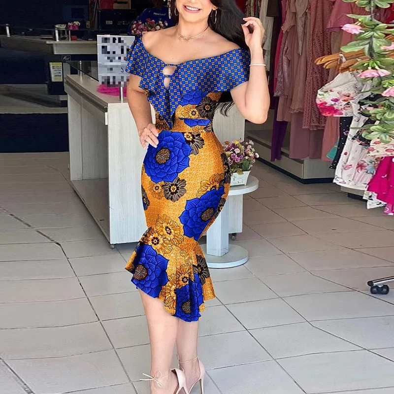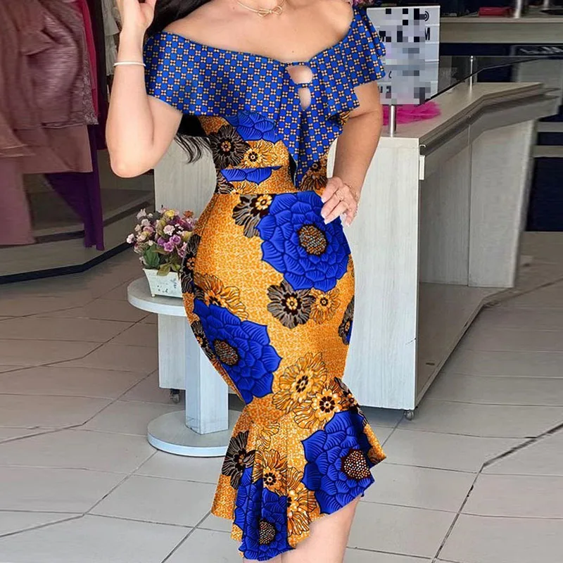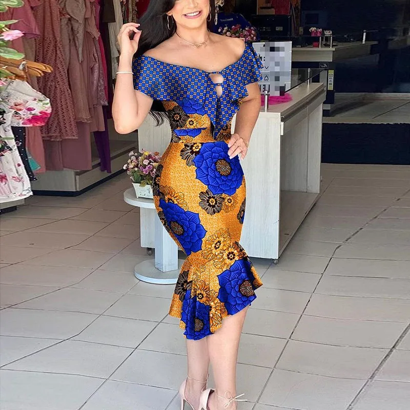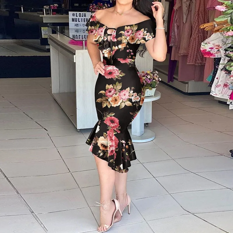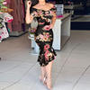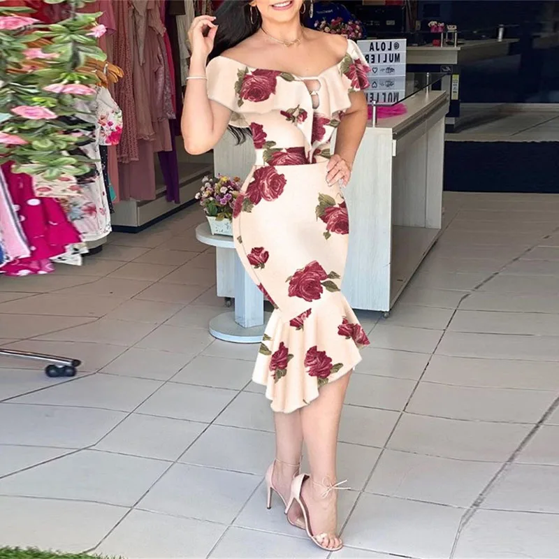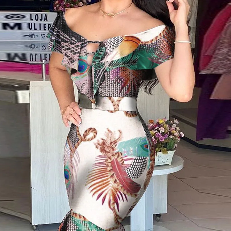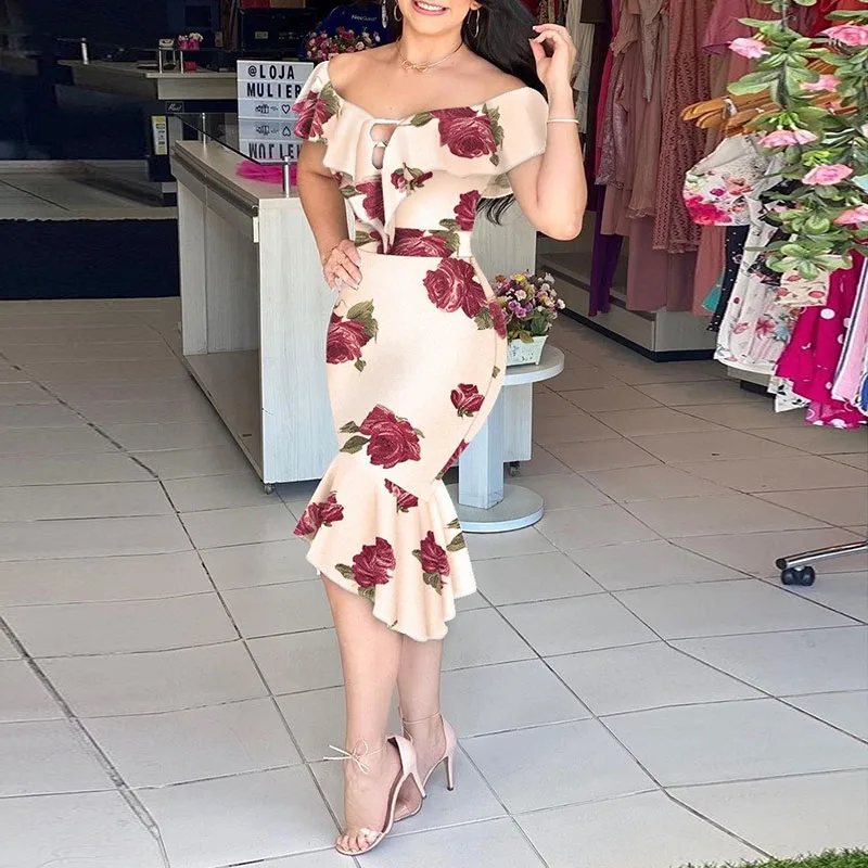 Elegant Women Dress 2021 Autumn Sexy Slash-neck Lrregular Ladies Slim Party Dresses Vintage Printed Casual Female Dress Vestido