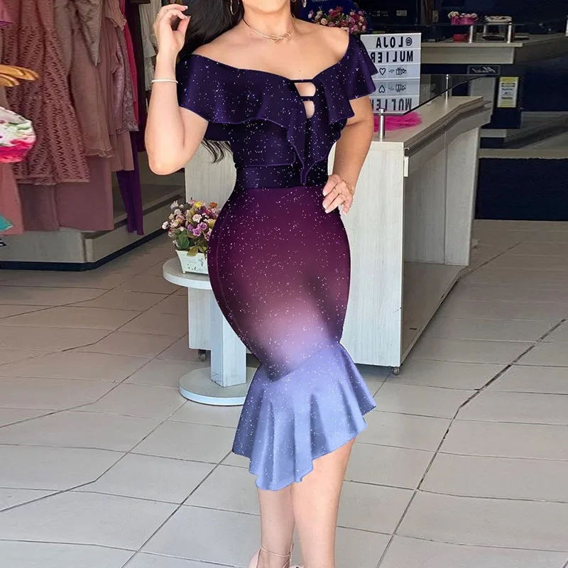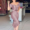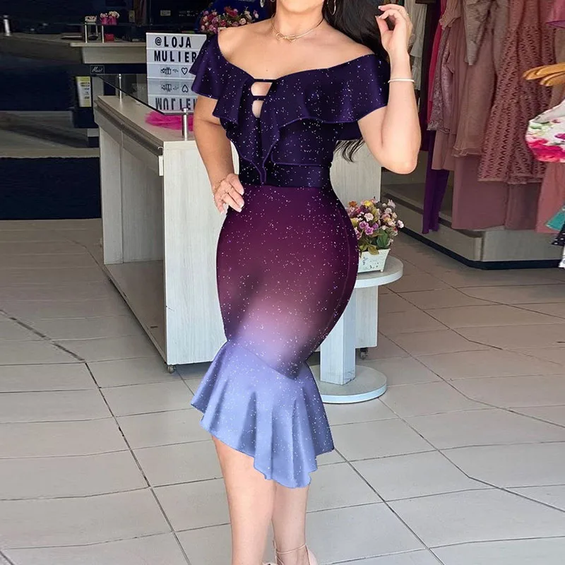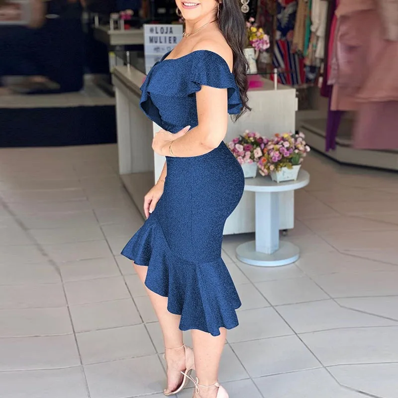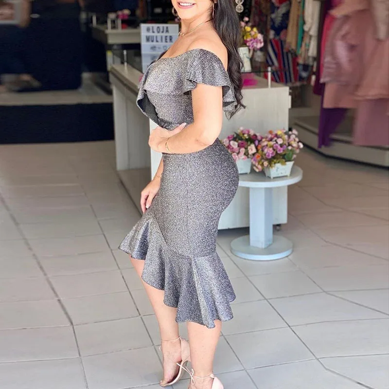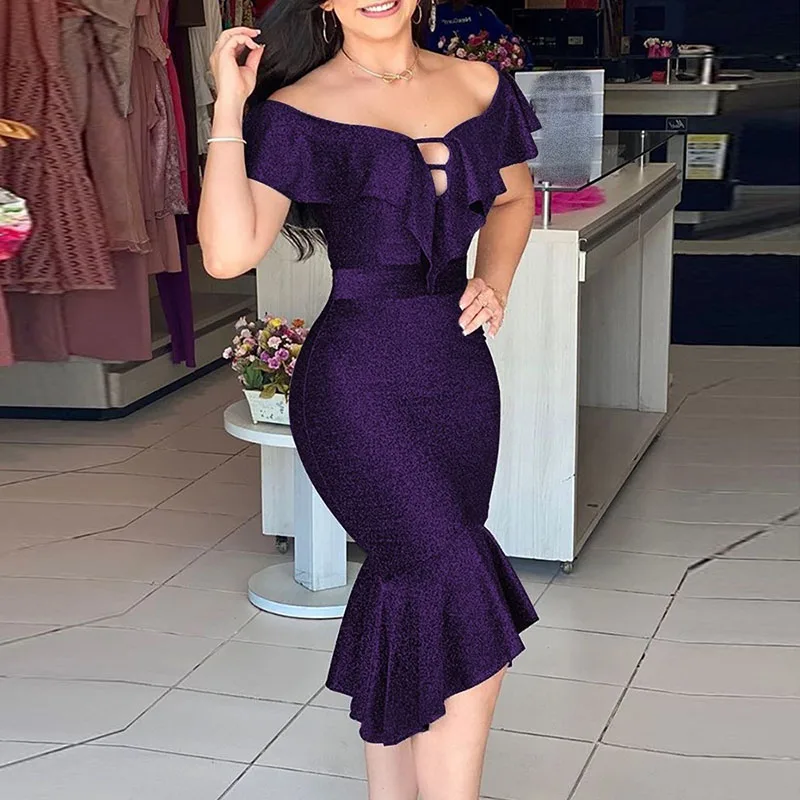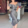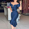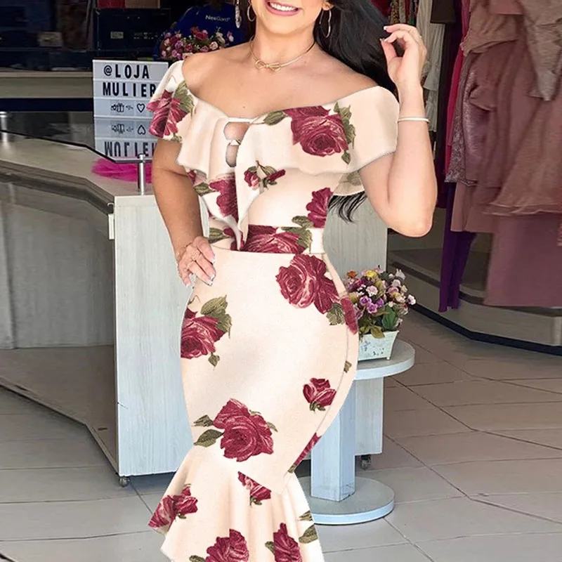 Elegant Women Dress 2021 Autumn Sexy Slash-neck Lrregular Ladies Slim Party Dresses Vintage Printed Casual Female Dress Vestido