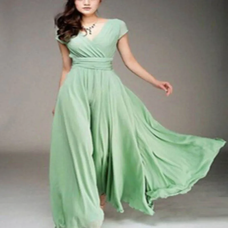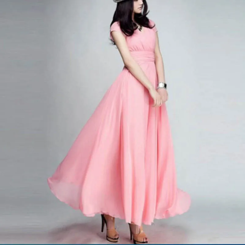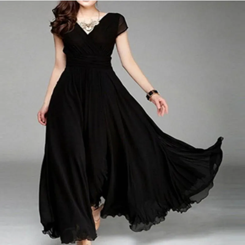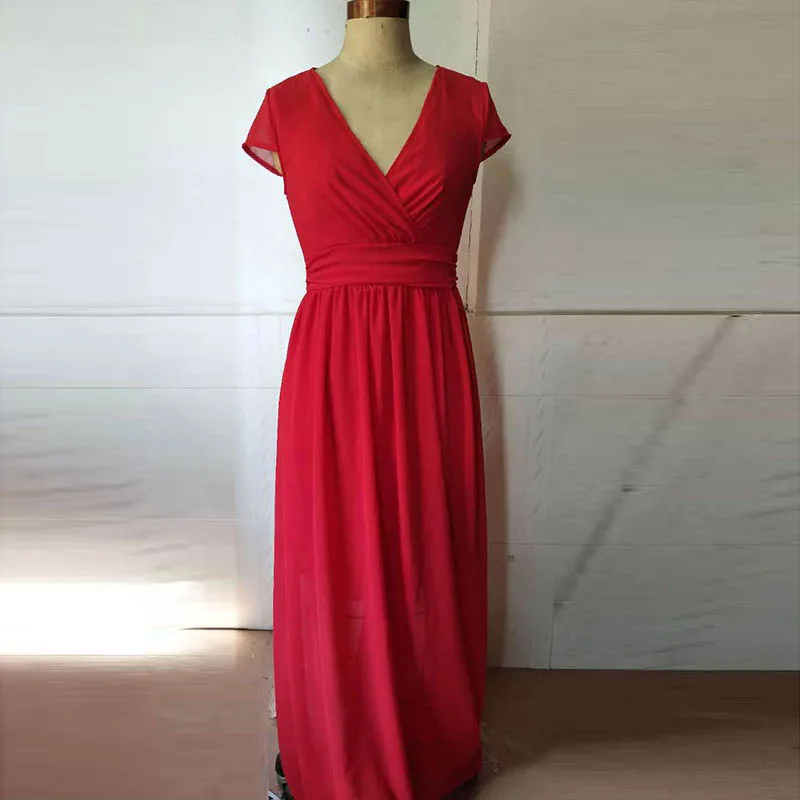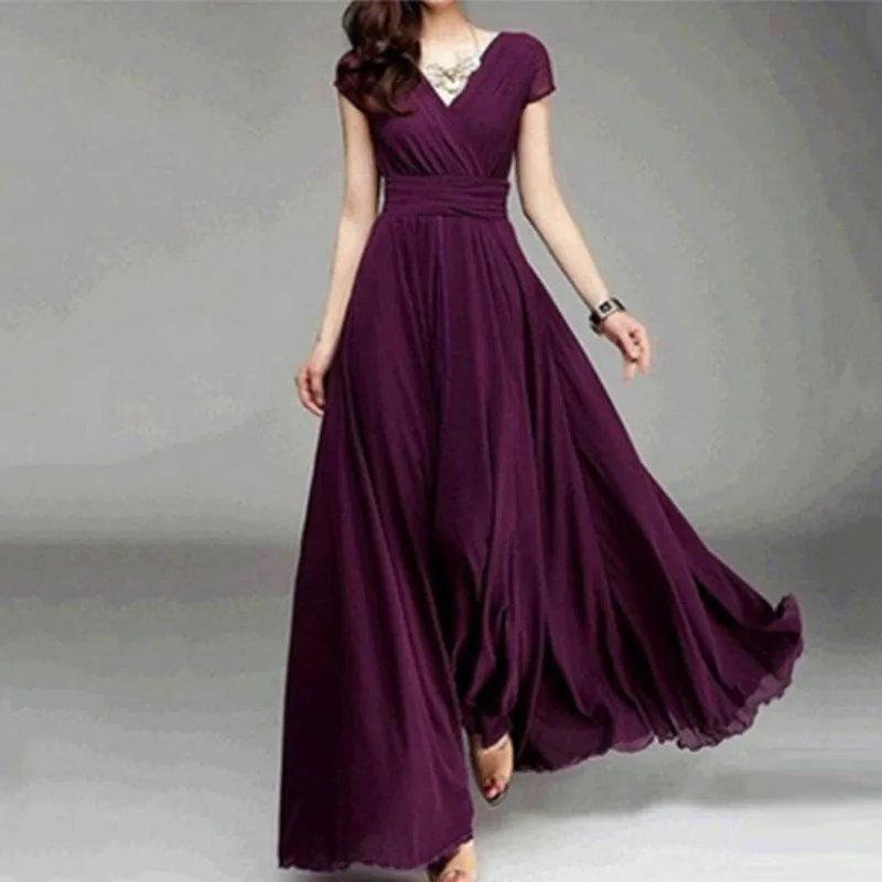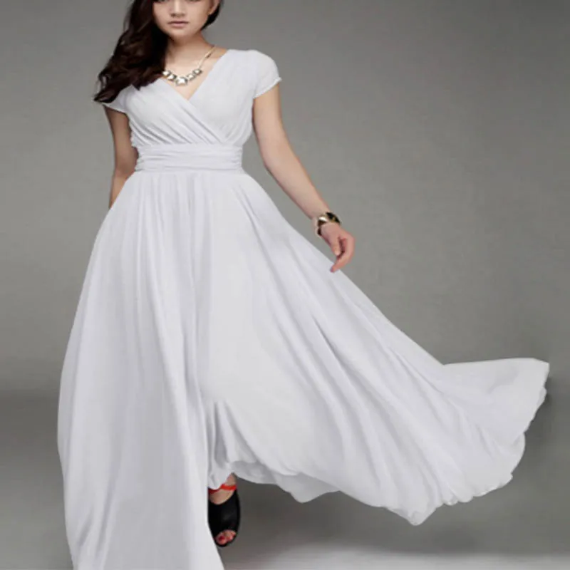 Elegant Women Dress 2021 Summer Fashion V-neck Short Sleeve Long Dress Vintage Solid Casual A-line Loose Party Dresses Vestido
