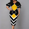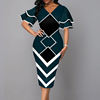 Elegant Women Dress 2021 Summer Fashion V Neck Short Sleeve Sexy Slim Dress Vintage Patchwork Casual Lady Party Dresses Vestido