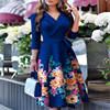 Elegant Women Dress Autumn Fashion Long-sleeved Suit Collar Lace-up Casual Loose Dress Vintage Floral Printed Lady Party Dresses