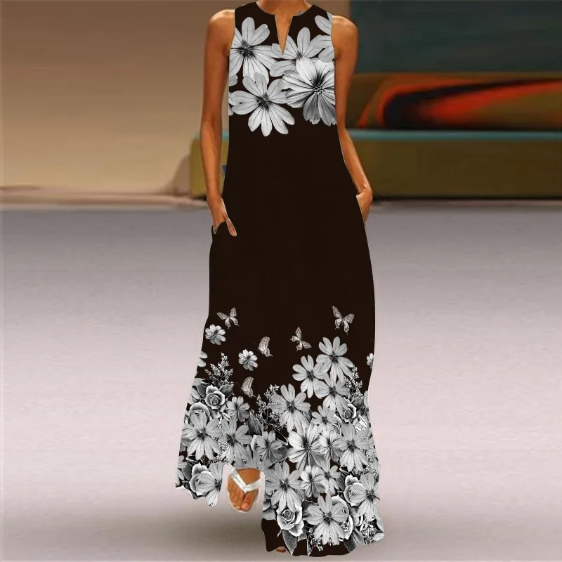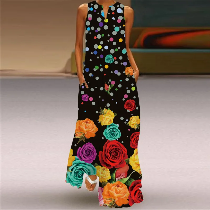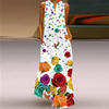 Elegant Women Dress Fashion Summer V-neck Sleeveless Loose Party Dresses Vintage 3D Love Printed Casual Lady Maxi Dress Vestido