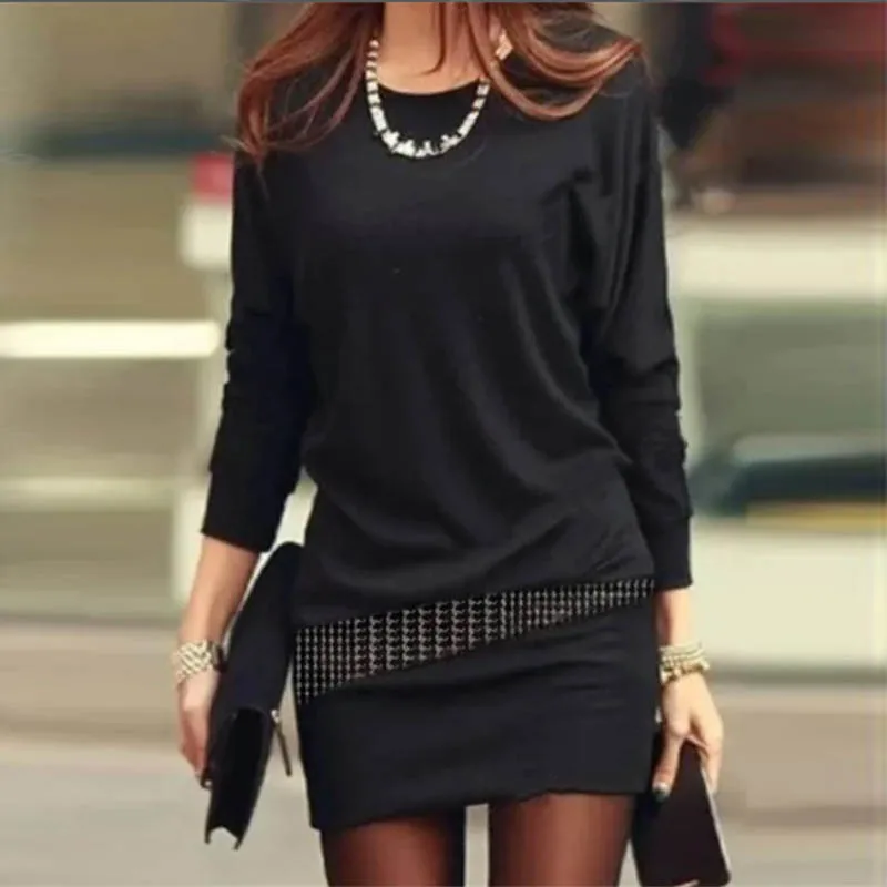 Elegant Women Dress Spring Fashion O Neck Long-sleeved Casual Mini Dress Vintage Patchwork Loose Ladies Party Dresses Vestido