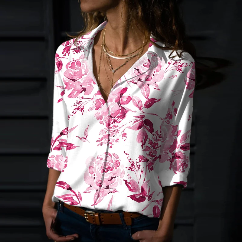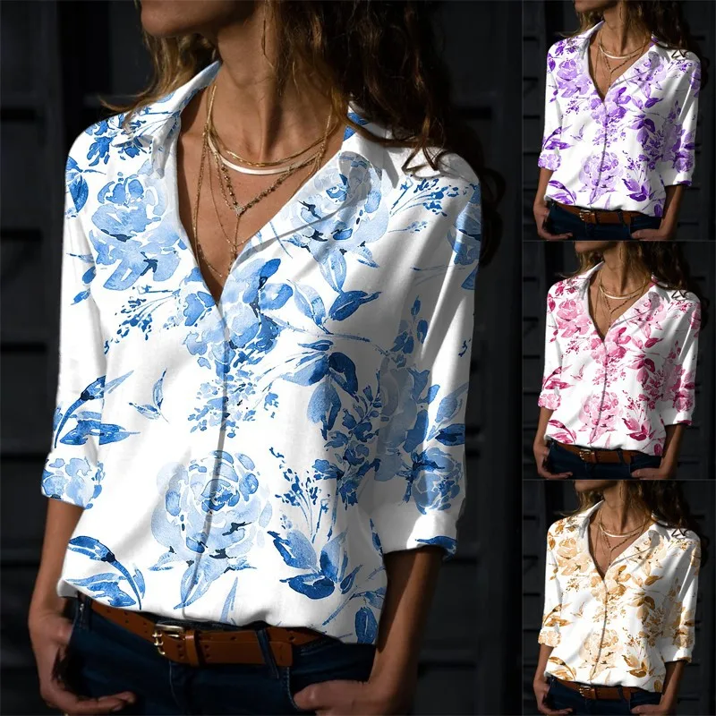 Elegant Women Loose Blouse New Autumn Fashion Turn-down Collar Button Cardigan Ladies Shirts Vintage Printed Casual Female Tops