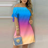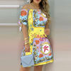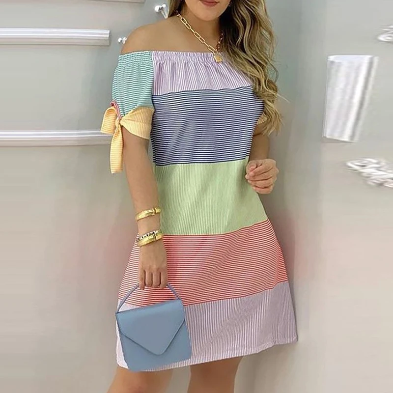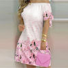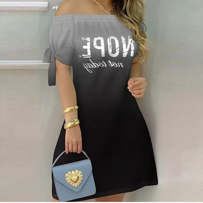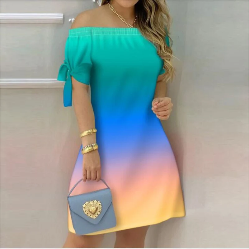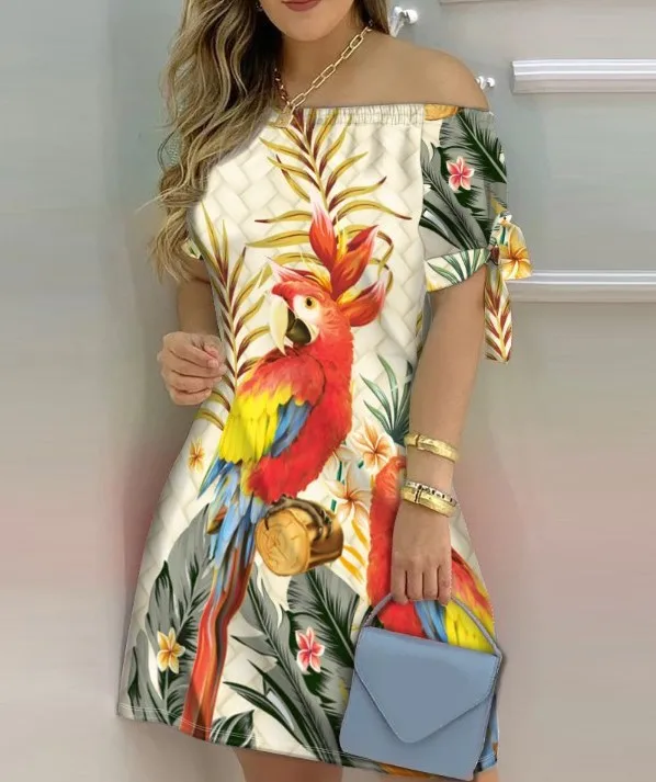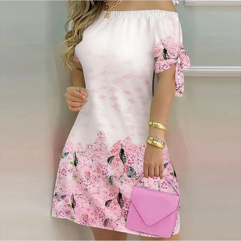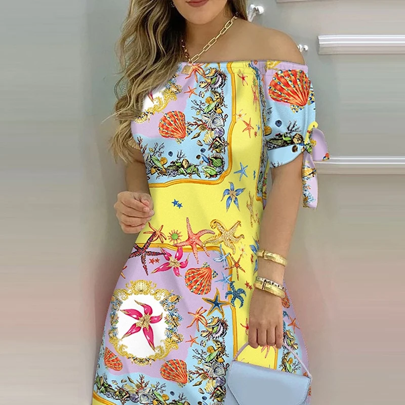 Elegant Women Loose Dress Summer Fashion Short Sleeve Slash Neck Casual A-line Dress Vintage Print Ladies Party Dresses Vestido