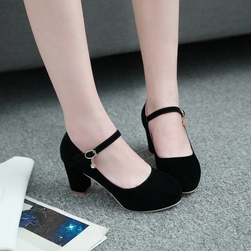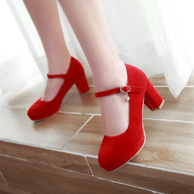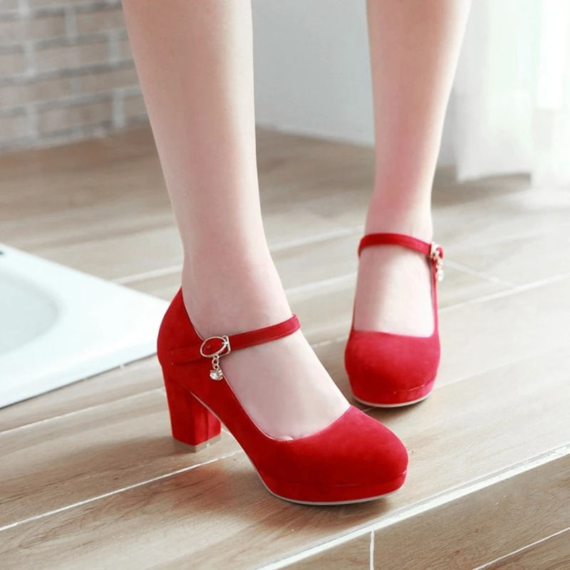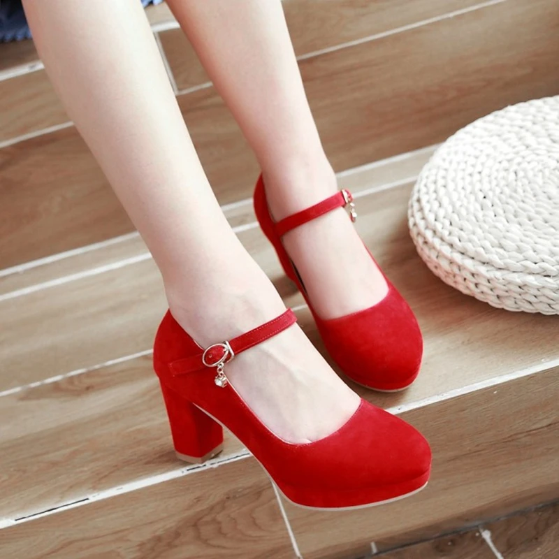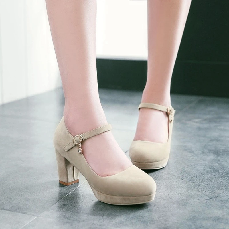 Elegant Women shoes Pumps Ankle Strap Wedding Party Platform Dress High Heels 7.5cm Suede Ladies Shoes zapatos de mujer 537-3