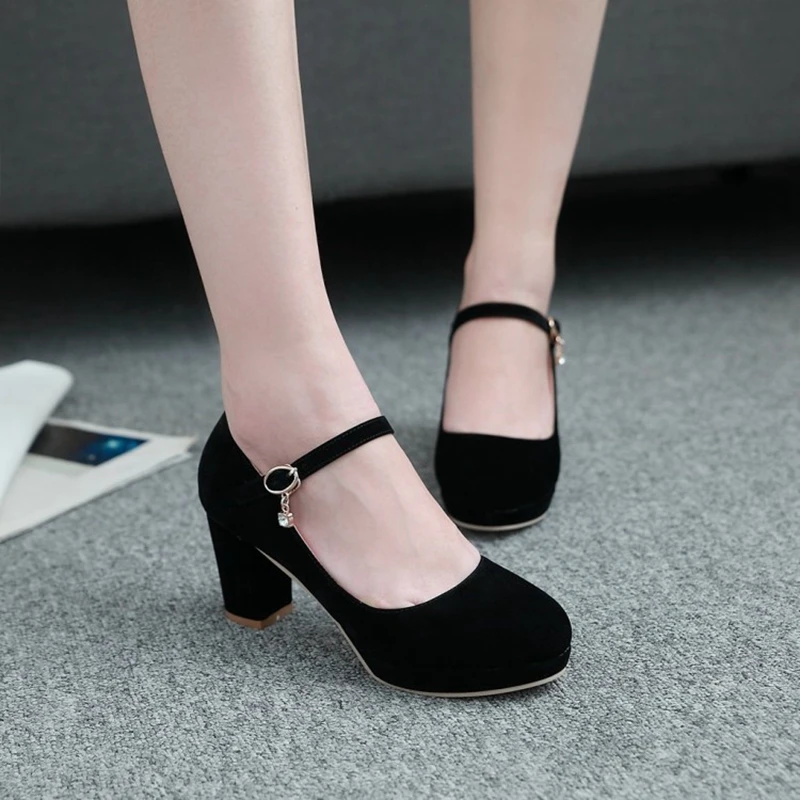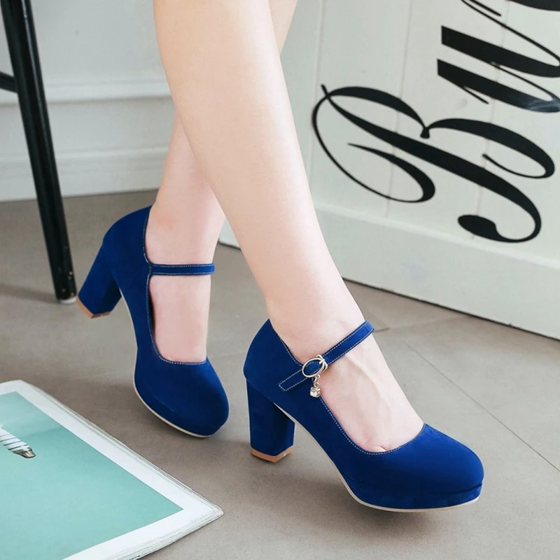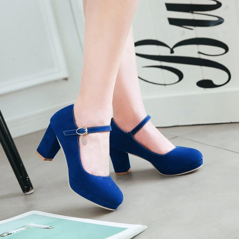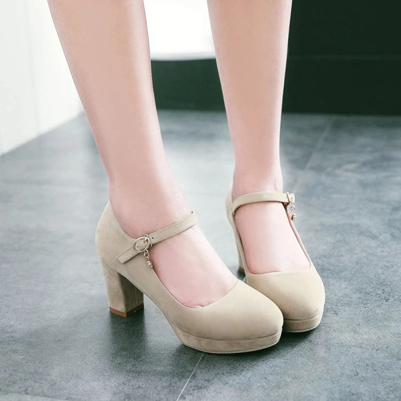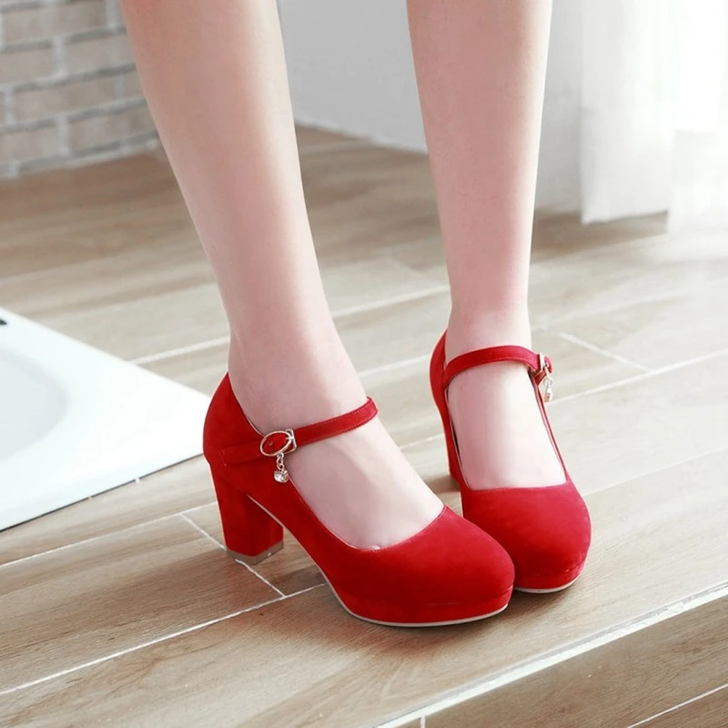 Elegant Women shoes Pumps Ankle Strap Wedding Party Platform Dress High Heels 7.5cm Suede Ladies Shoes zapatos de mujer 537-3