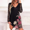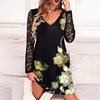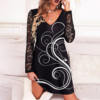 Elegant Women V-neck Party Dress Spring Sumer Mesh Long Sleeve Mini Dress Autumn Patchwork Shiny A-Line Lace Dresses