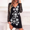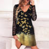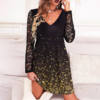 Elegant Women V-neck Party Dress Spring Sumer Mesh Long Sleeve Mini Dress Autumn Patchwork Shiny A-Line Lace Dresses