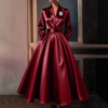 Elegant Women’s Dress Sexy V Neck Long Sleeve Pleated Midi Dress Waisted Evening Party Dress Women’s Long Dress Vestidos Robe