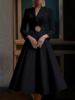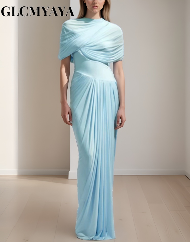 Elegant Women’s Dress Wrap V Neck Long Sleeve Pleated Midi Dress Waisted Evening Party Dress Women’s Long Dress Vestidos