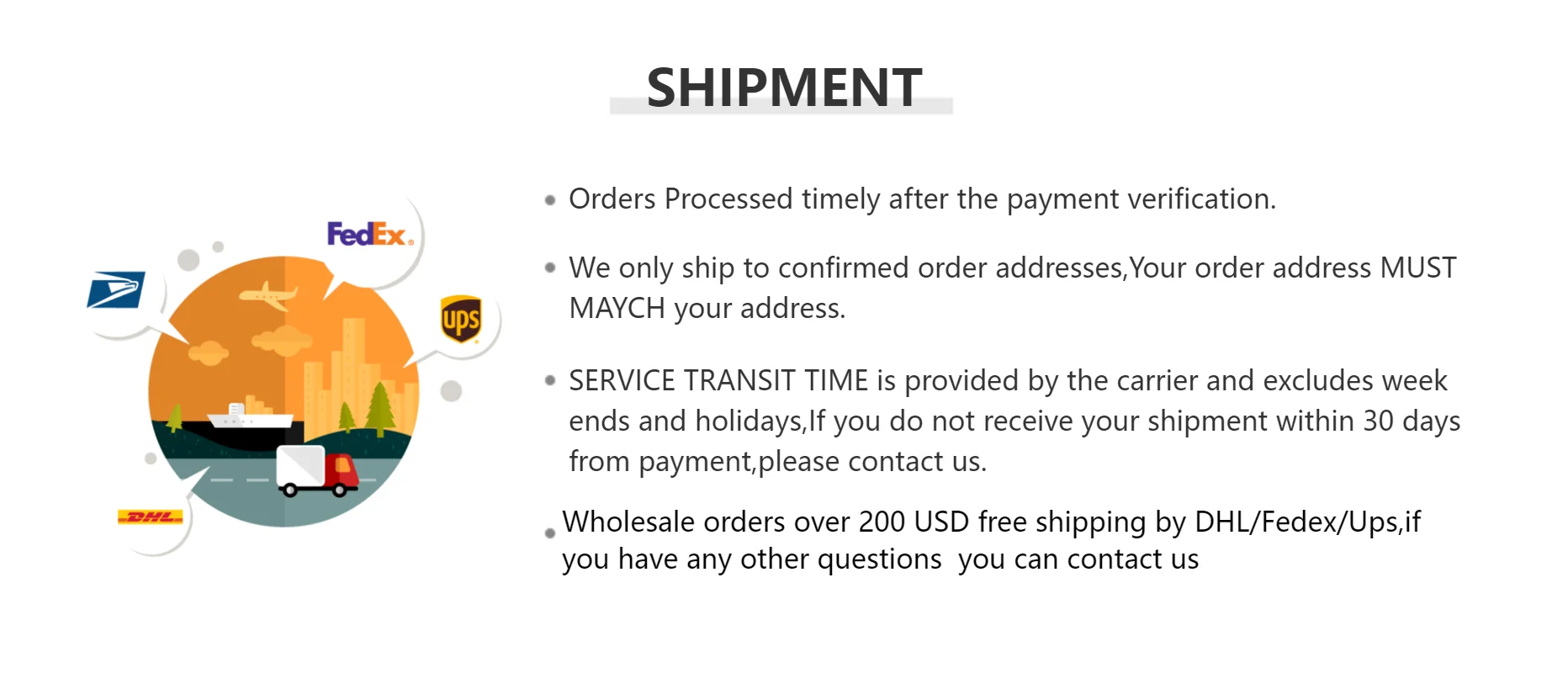 • If you did not receive the product within the guaranteed time( 45 days not including 2-5 day processing) you can request a refund or a reshipment.