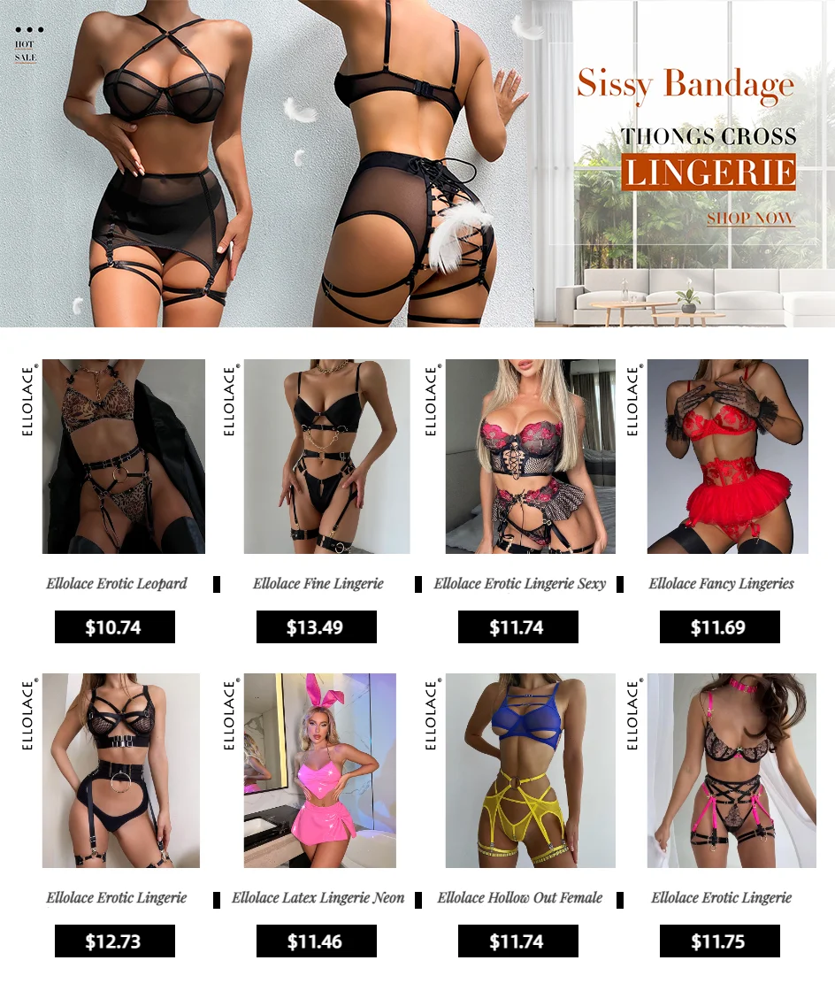 Ellolace Sexy Exotic Costumes Sensual Lingerie Transparent Bandage Erotic Apparel Porn Goth Mesh Sex Outfit Sissy Top and Briefs