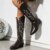 Embroidered cowboBoots/retro mid calf boots/embroider PU leather boots