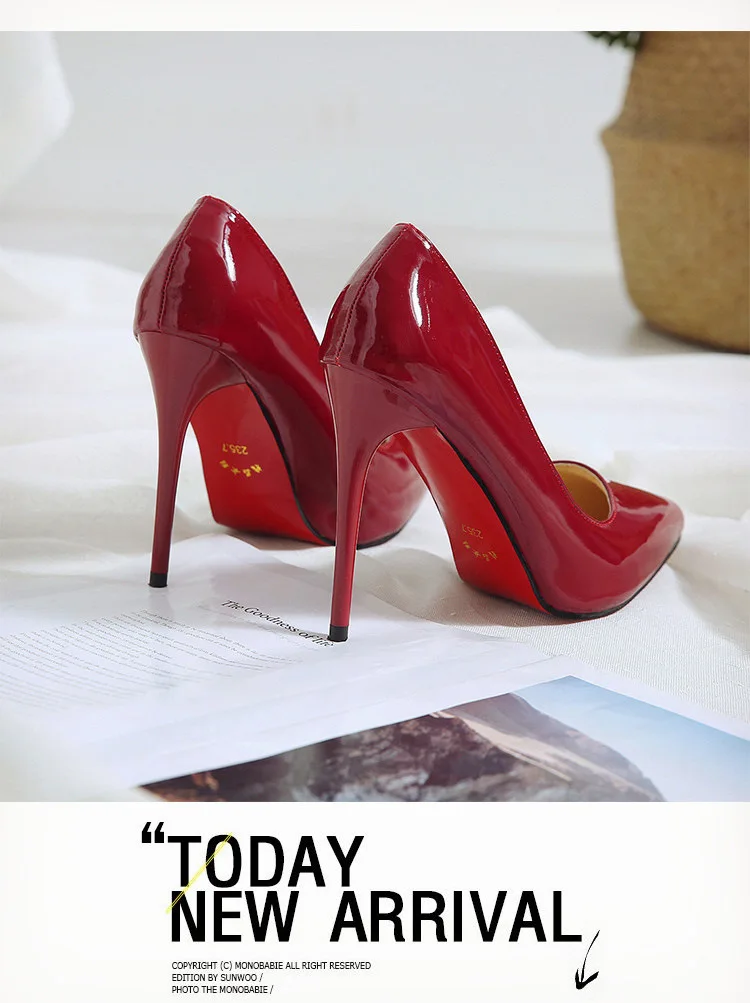 Europe Women Shoes High Heels Pumps Red Bottom Shoes Woman Fashion Thin Heels Pointed Toe Slip-On Party Ladies Shoes Size 35-44