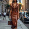 Europea America Leather Slim Women’s Dress Sexy High Waist Wrap Hip Office Dress Elegant Sleeveless PU Long Dresses Vestidos
