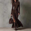 European American Long Dress for Women Solid Long Sleeves High Neck Zipper Maxi Dress Temperament Elegant High Street Dresses