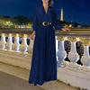 Evening Party Jumpsuit For Women Long Sleeve Solid Sequin V-neck High Waist Slim Fashion Elegant Chic Spring Autumn New Jumpsuit