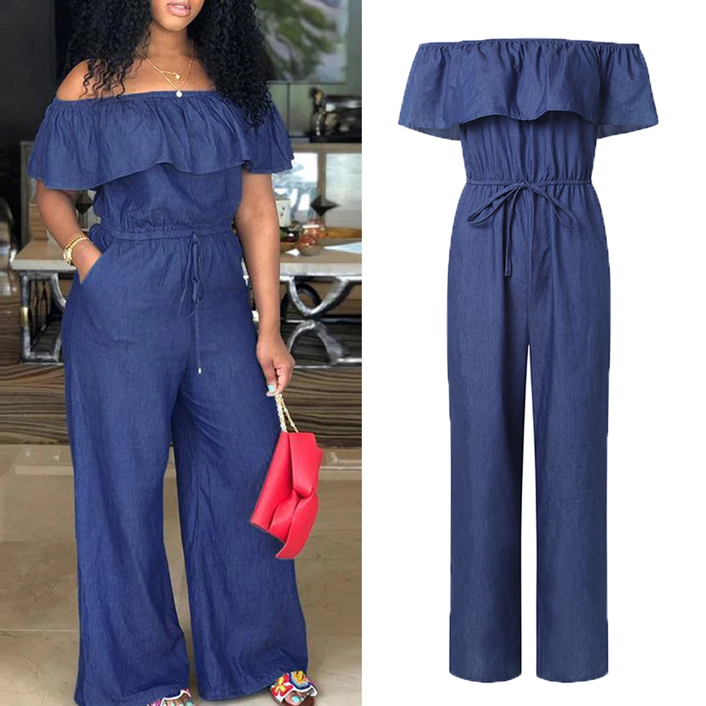 Fashion Casual Women Solid Off Shoulder Long Romper Jumpsuit Bodysuit Overall Wide Legs