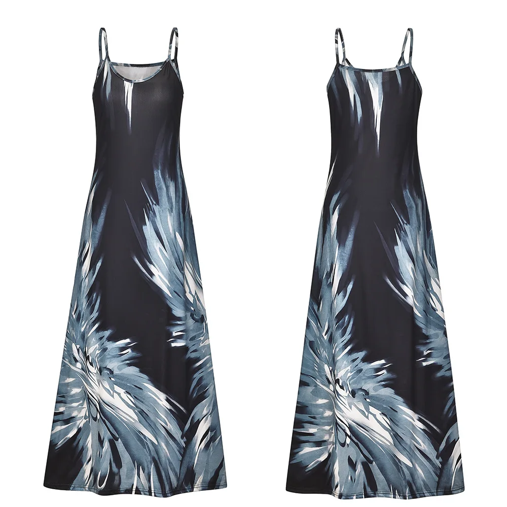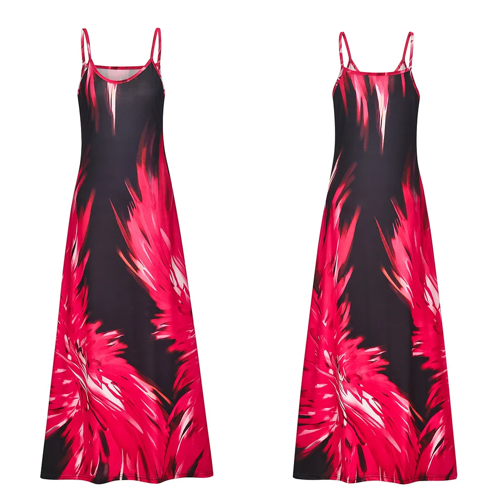 Fashion Floral Printed Sexy Women Robe Summer 2021 Sleeveless Spaghetti Strap Slim Long Dress Streetwear Stretch Women Dress