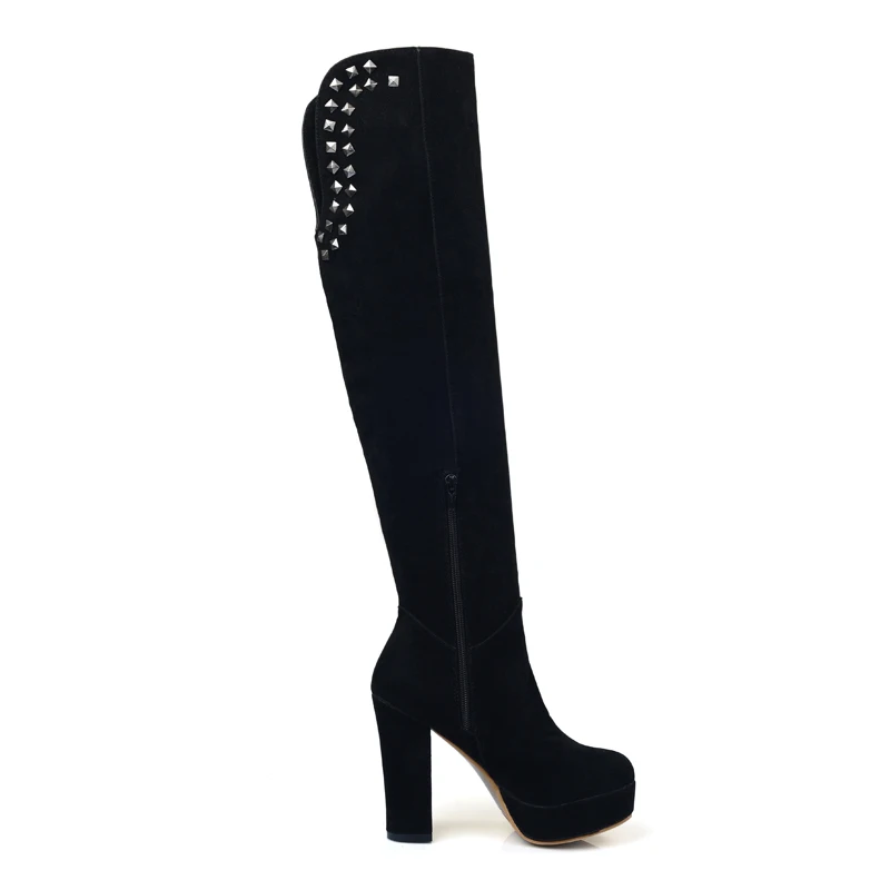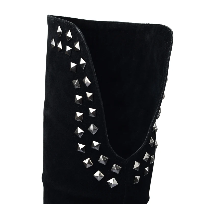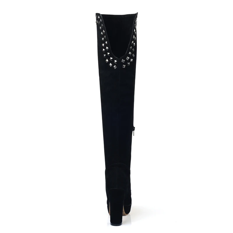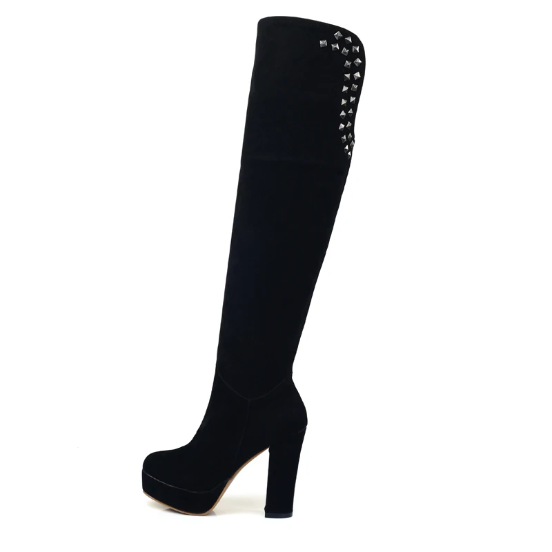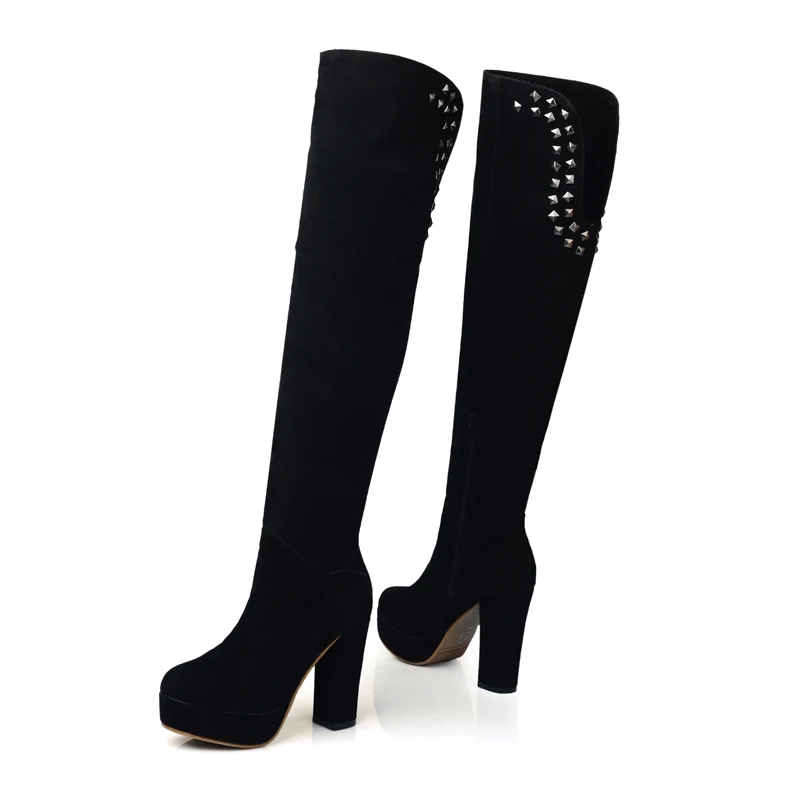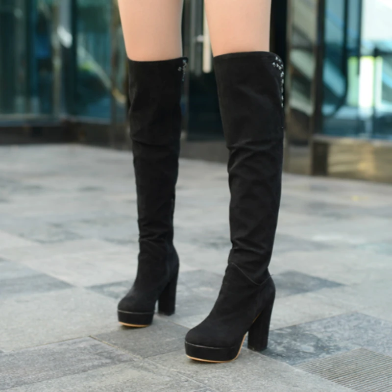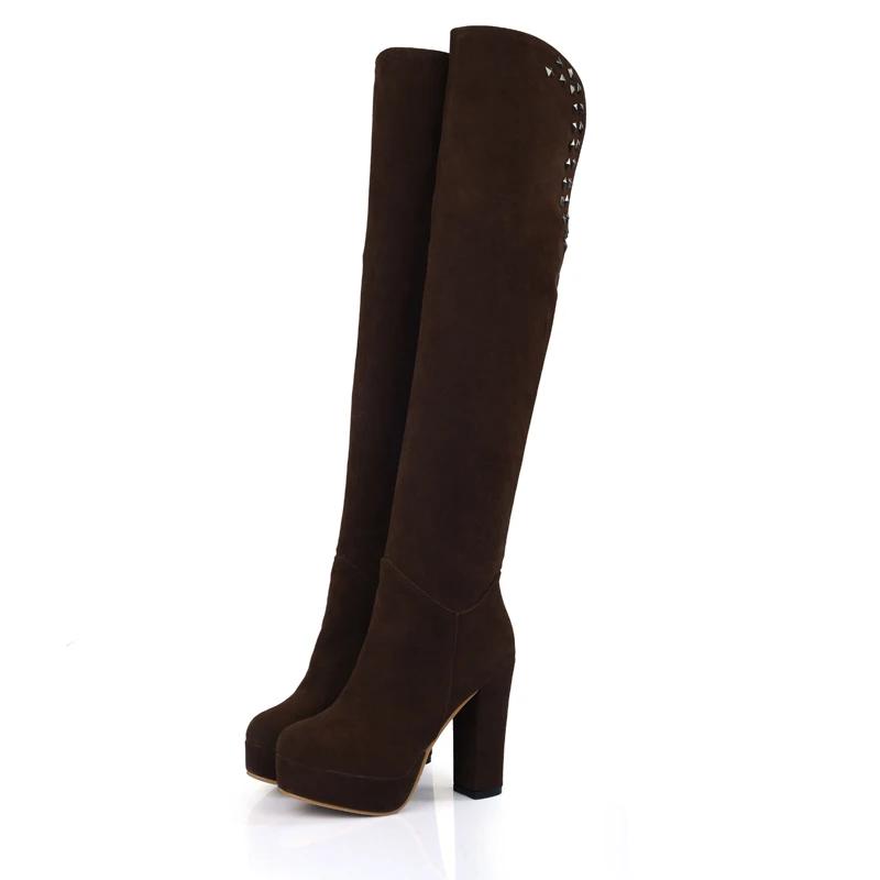 Fashion Knee High Boots Women Soft Velvet Green Brown Long Boot Shoes Block High Heels Platform Winter Boots Lady Large Size 48