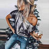 Fashion Loose Blouse Summer Sexy Short Sleeve Slash-neck Casual Pullover Tops Vintage Sequinis Elegant Street Lady Office Shirts