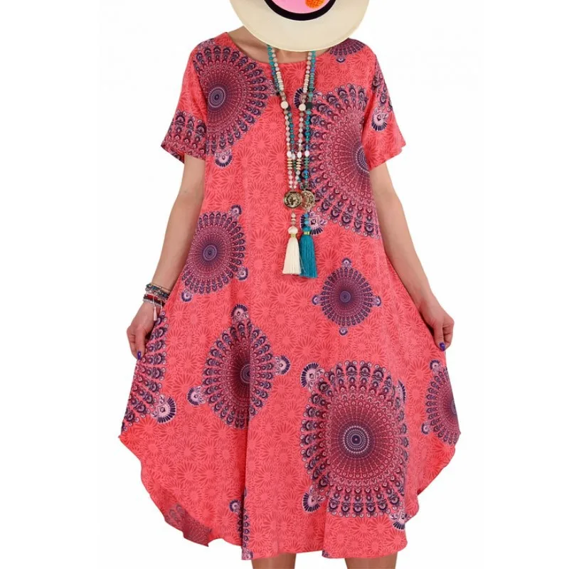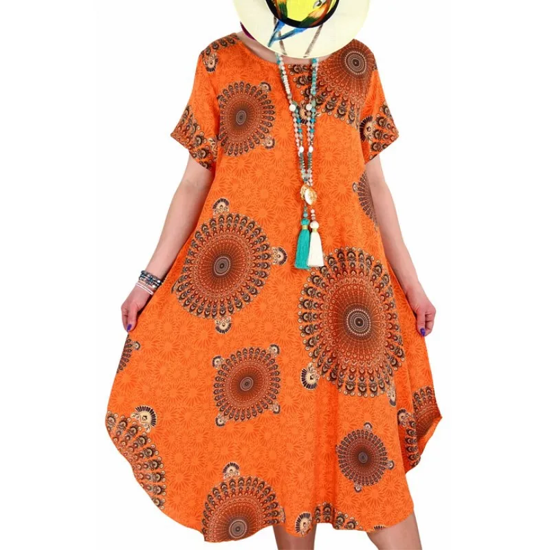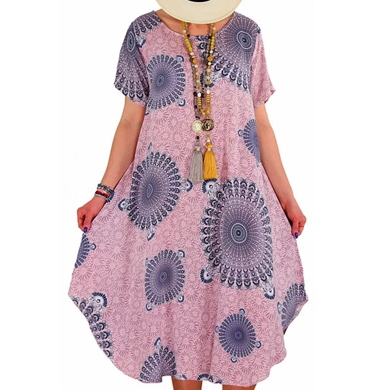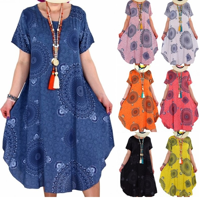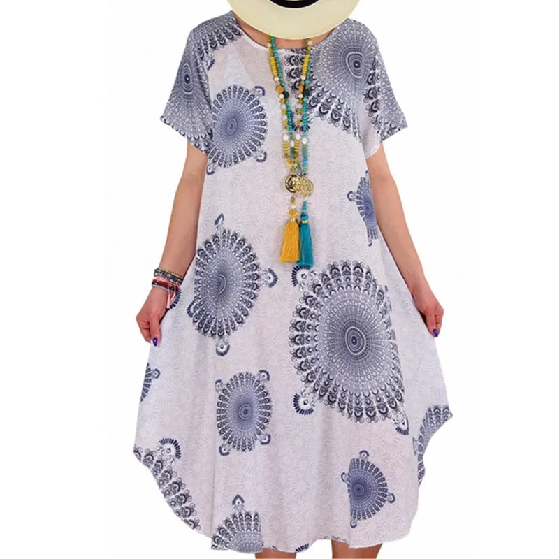 Fashion Loose Women Summer Dresses Short Sleeve Dot Printed Knee-length Dress Thin Big Swing Casual Women Boho Dress Vestidos
