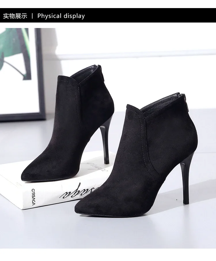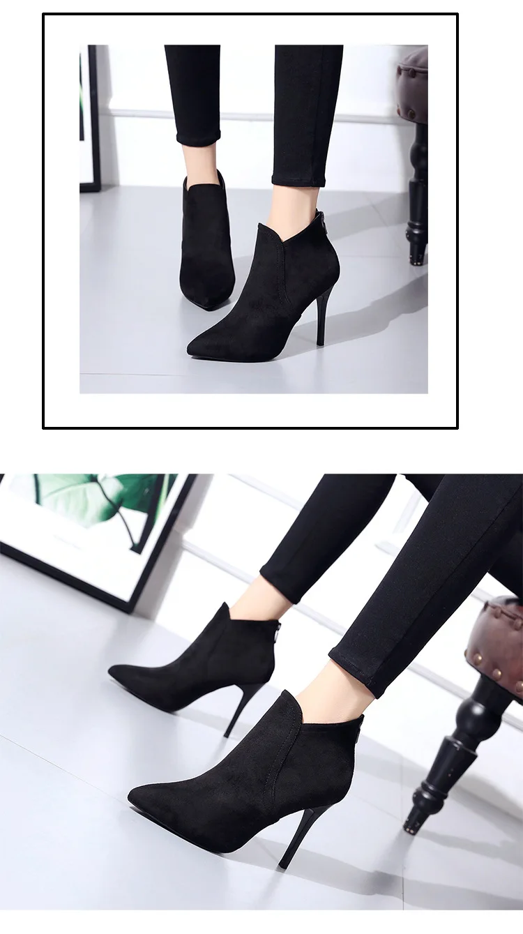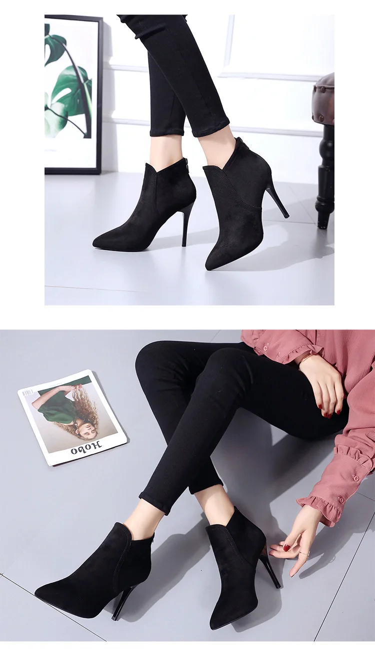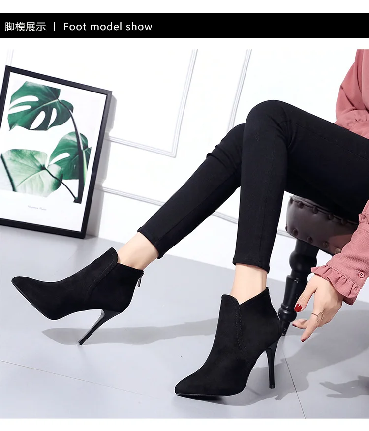 Fashion Patent leather Pointed Toe High Heel Boots Shoes Woman Zipper Ankle Boots Women Shoes Thin Heel Women Boots tyh