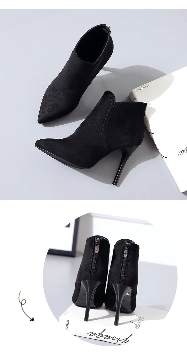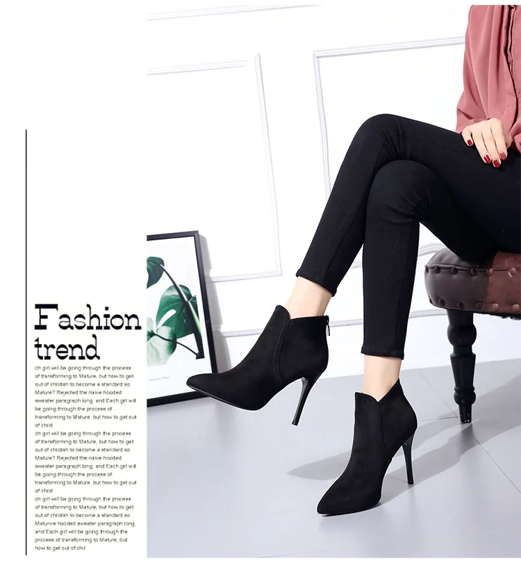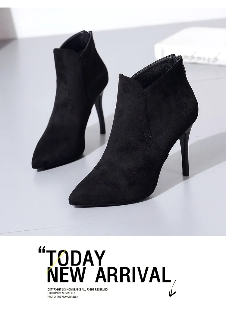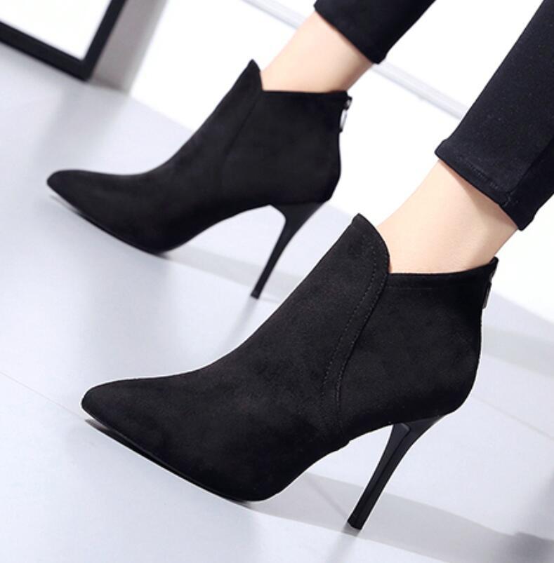 Fashion Patent leather Pointed Toe High Heel Boots Shoes Woman Zipper Ankle Boots Women Shoes Thin Heel Women Boots tyh