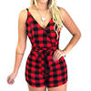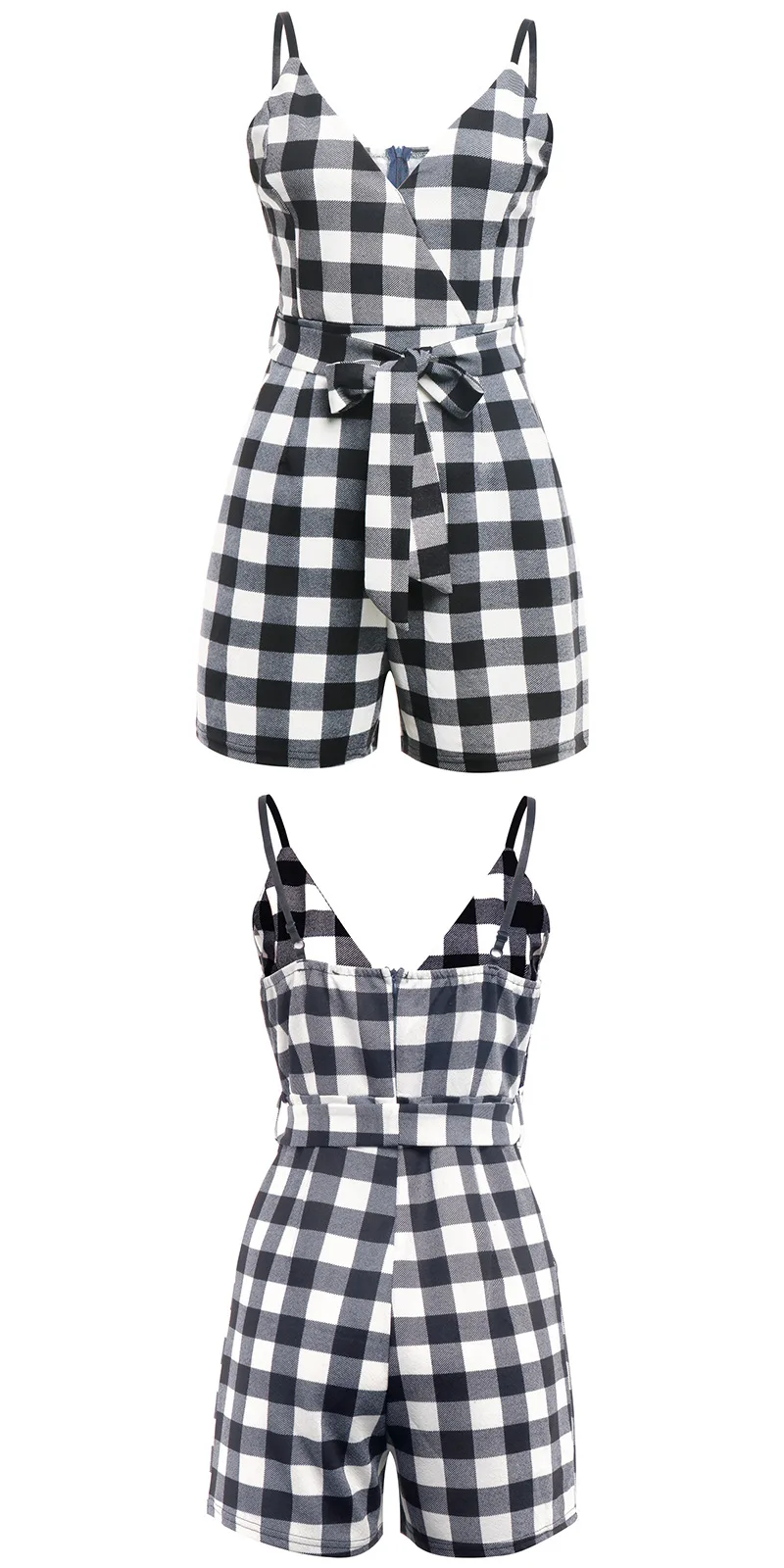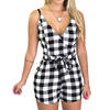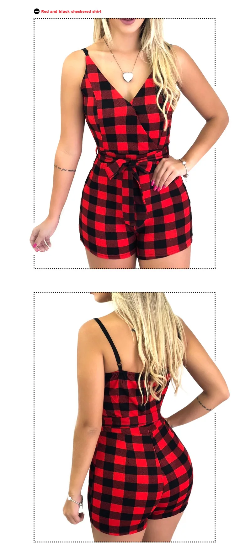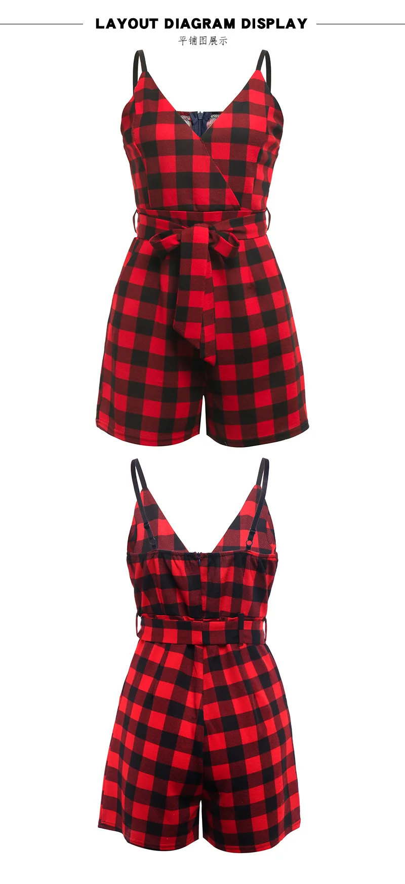 Fashion Plaid print Jumpsuits Women V-neck Sleeveless Backless Sexy bodysuit Summer Zipper Bodycon Belt Red Black Jumpsuits