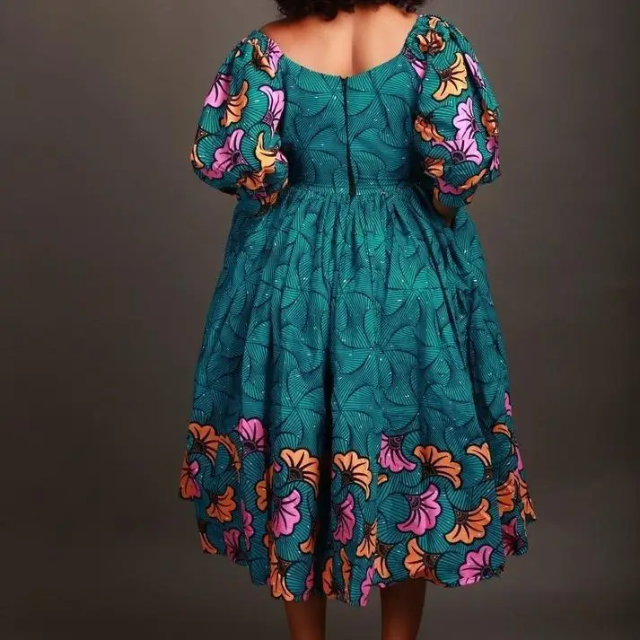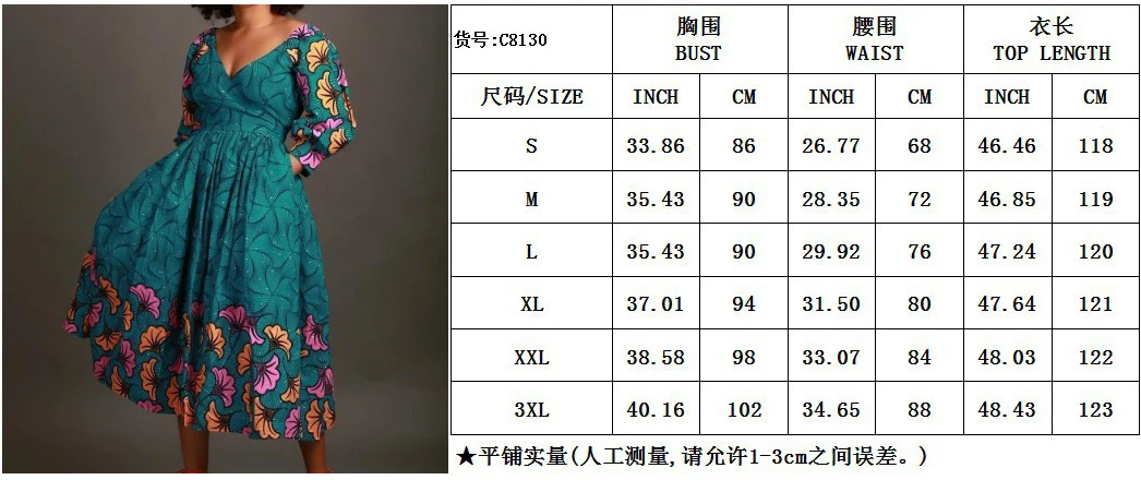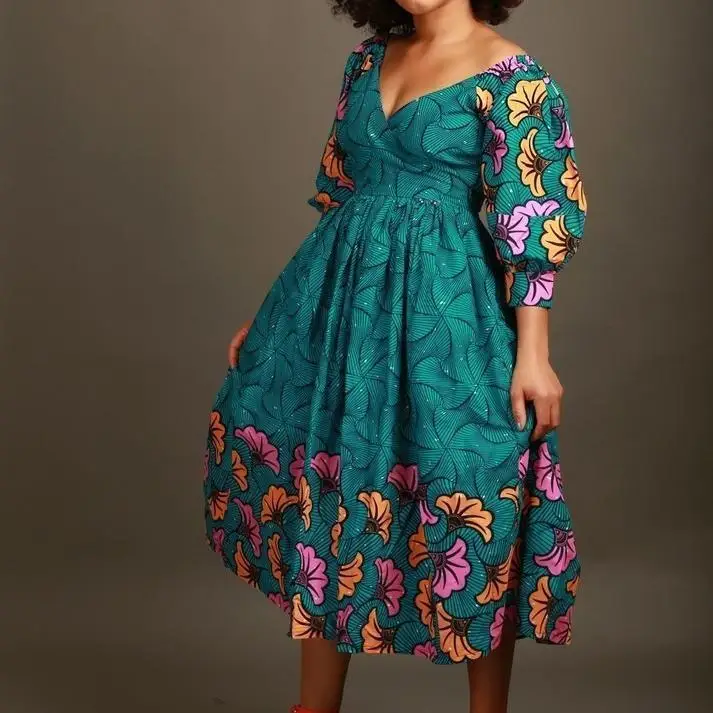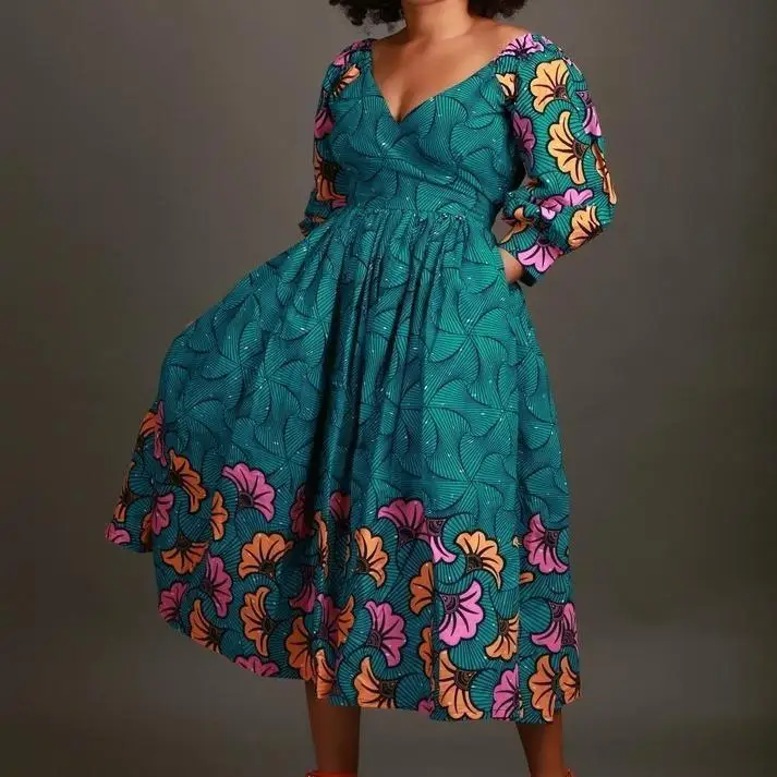 Fashion Print African High Waist V-neck Dress for Women Sexy Lady Dashiki Ankara Clothes Elegant Female Party Flower Dresses