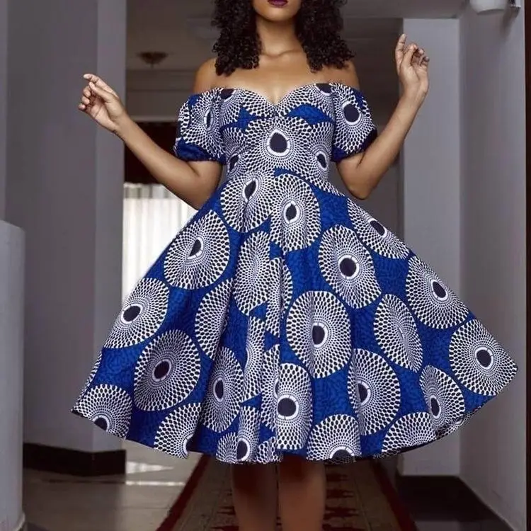 Fashion Print African Off Shoulder Dress for Women Summer Lady Traditional Dashiki Clothes Elegant Female Wedding Party Dresses