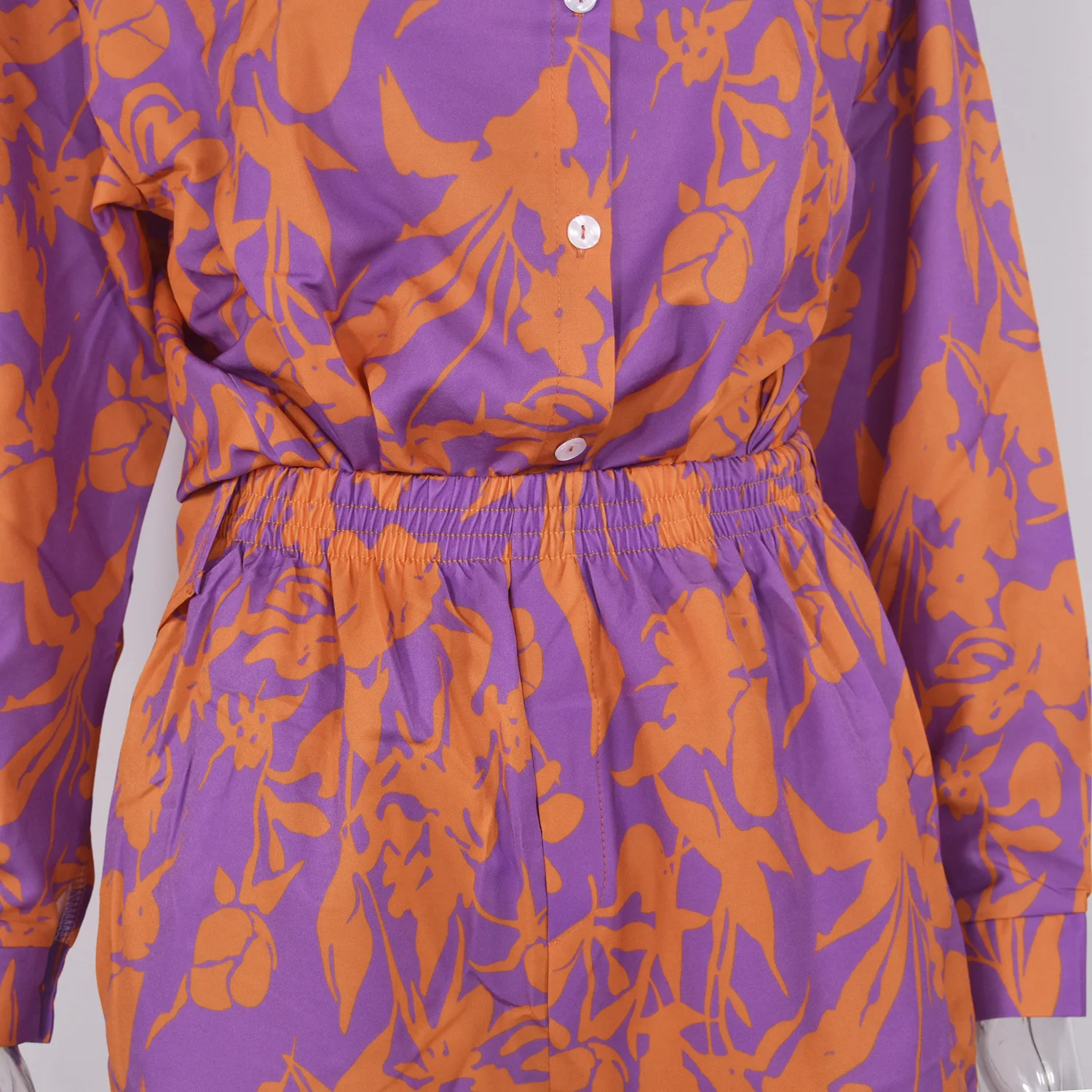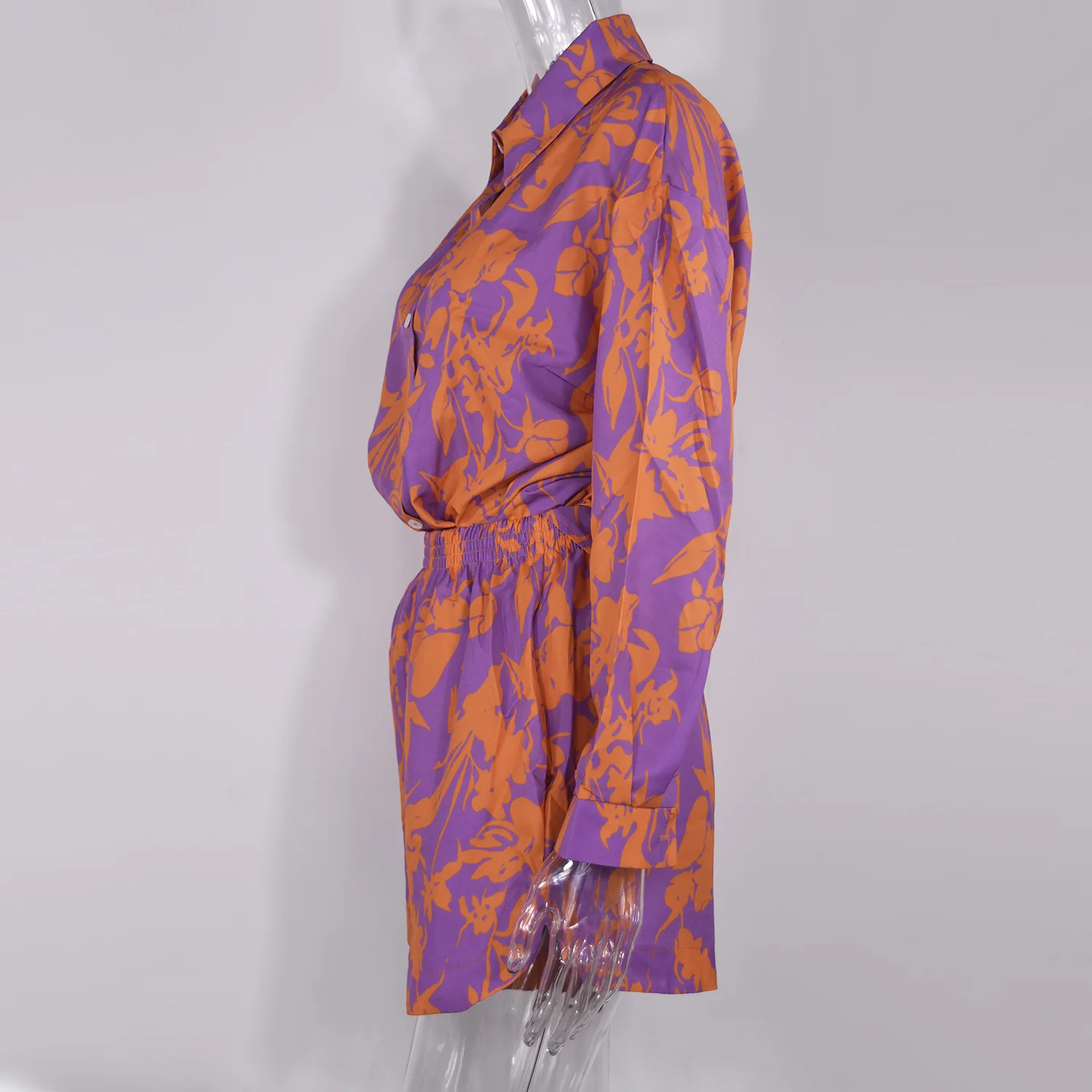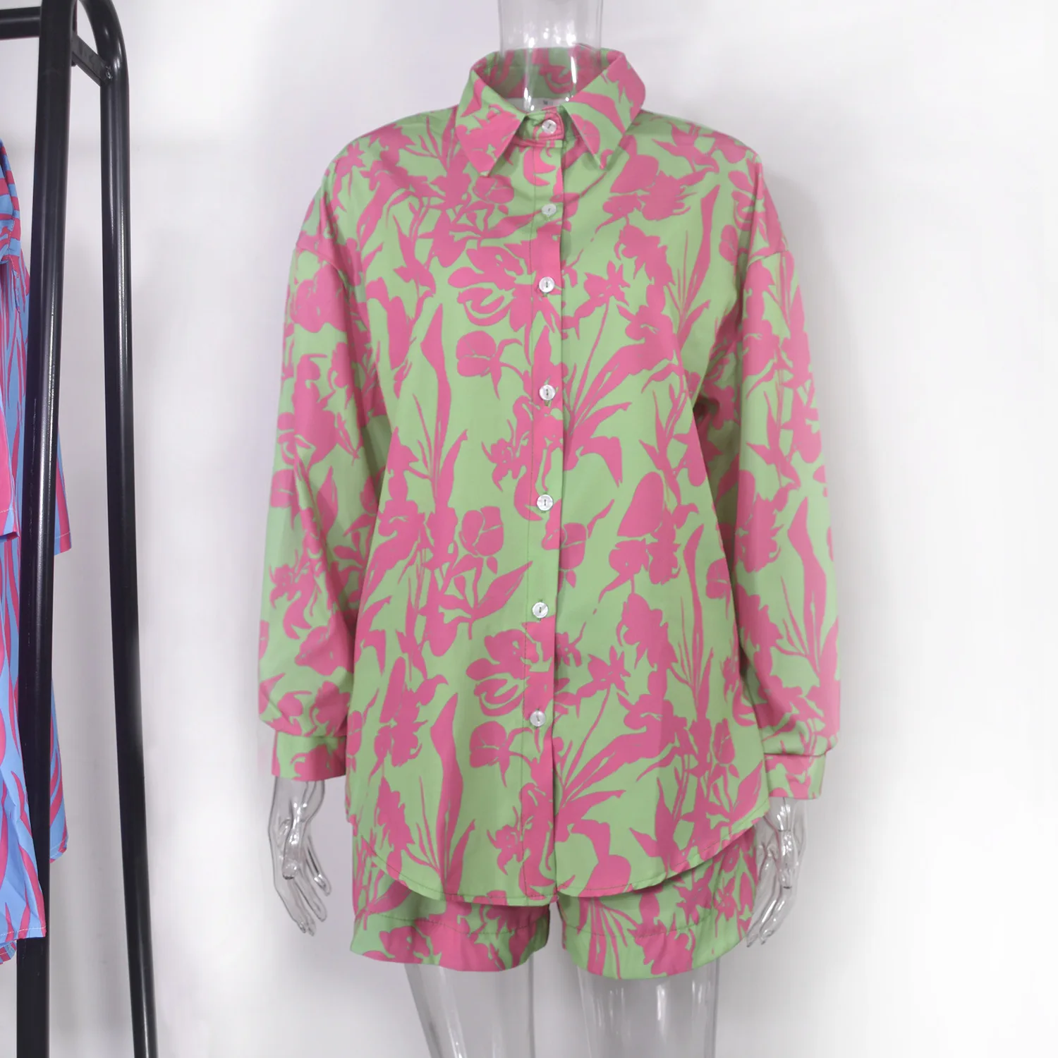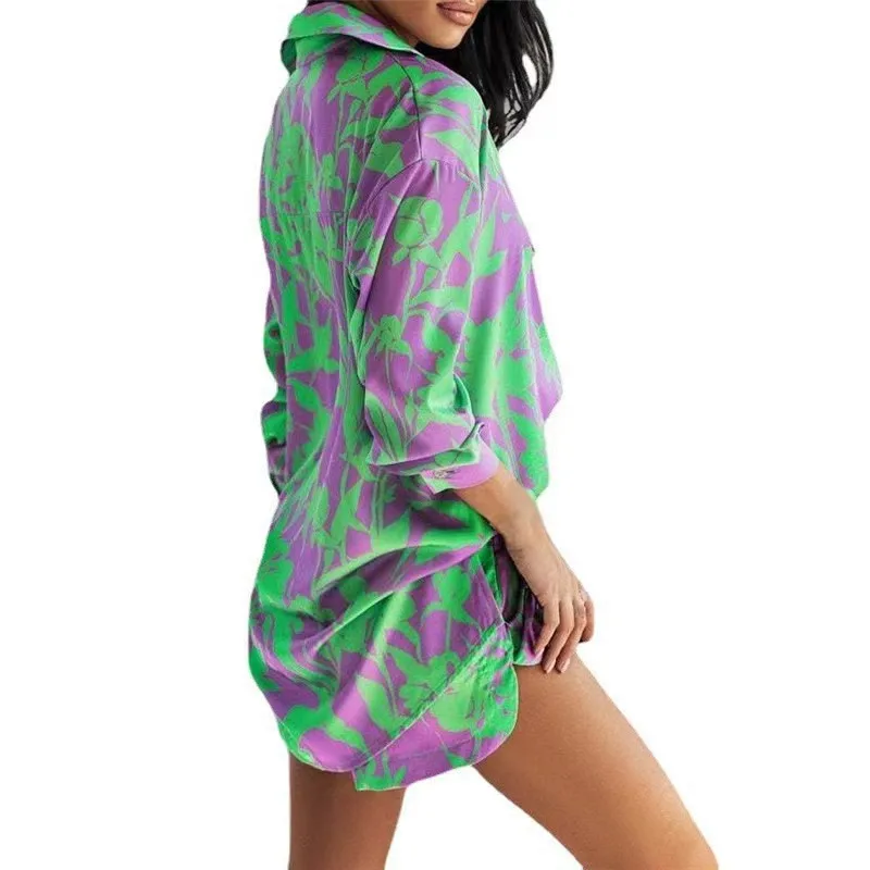 Fashion Print Sets For Women 2022 Summer Casual Bohemian Vacation Long Sleeve Shirt Top Shorts 2 Piece Set Woman Pocket Suit