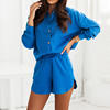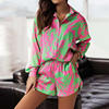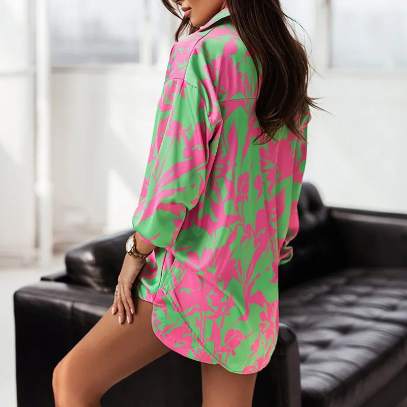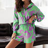 Fashion Print sets for women Summer Casual Bohemian Vacation long sleeves Shirt Top + shorts 2 Piece Set woman loose pocket suit