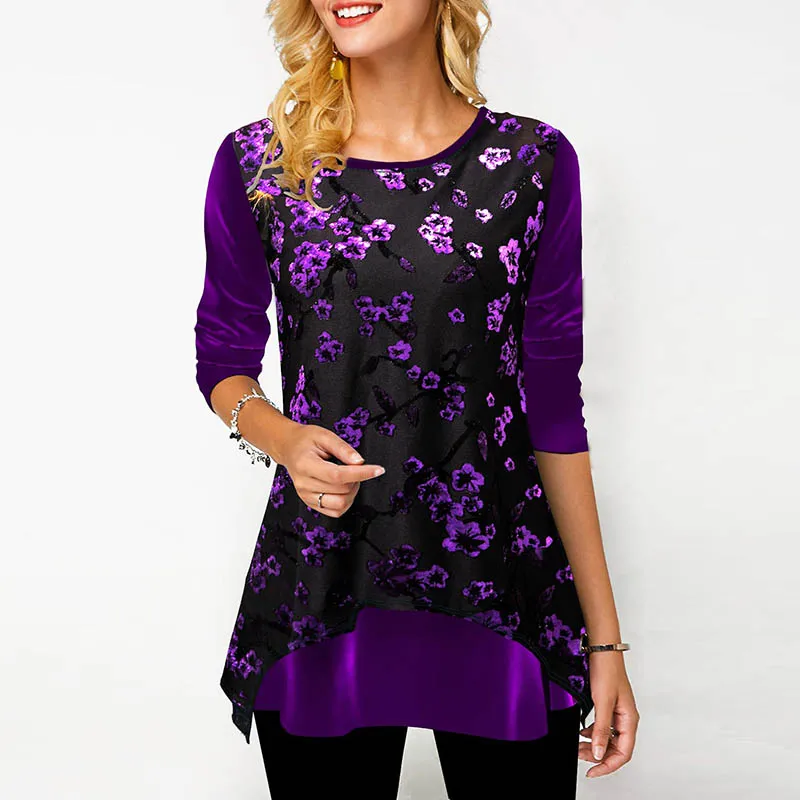 Fashion Print Women T Shirt Autumn Long-sleeved Casual O-neck Ladies Pullover Tops Vintage Floral Printed Female Office Shirts