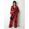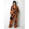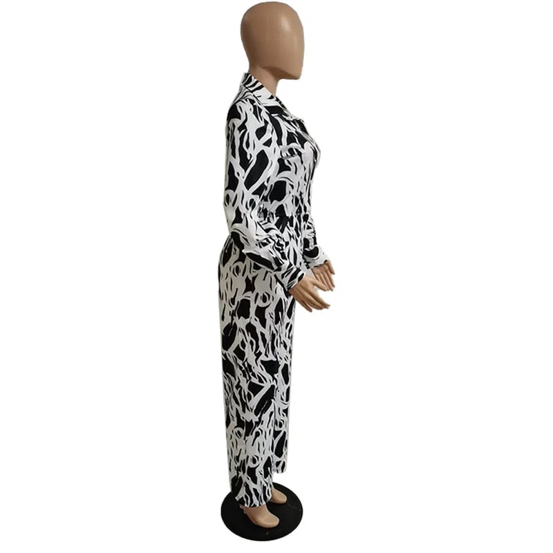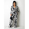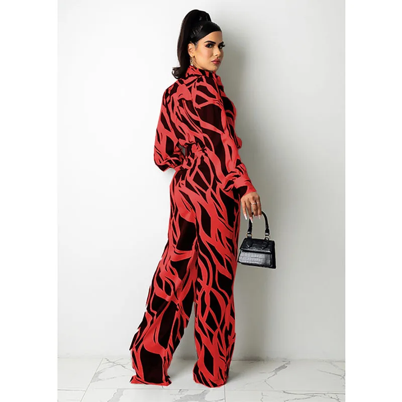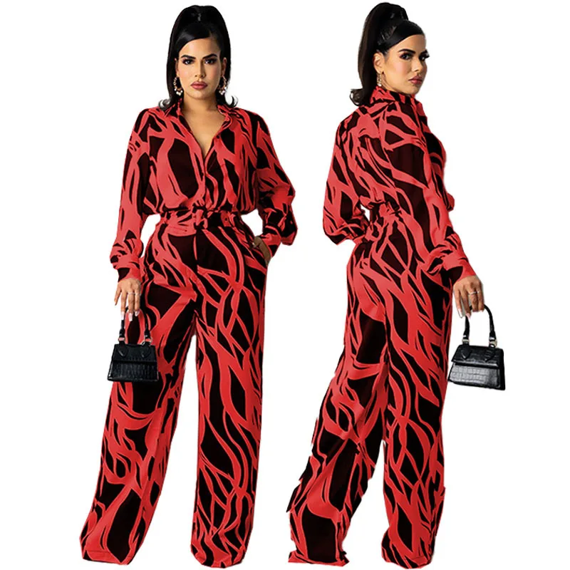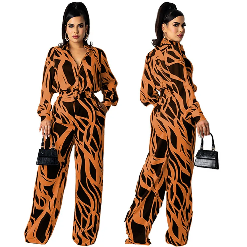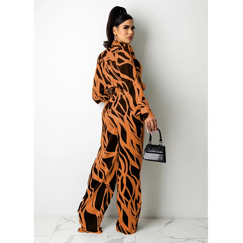 Fashion Printed Women Jumpsuit 2021 Autumn Casual Turn-down Collar Button Cardigan Long Sleeve Wide-Leg Pant Loose Lady Rompers