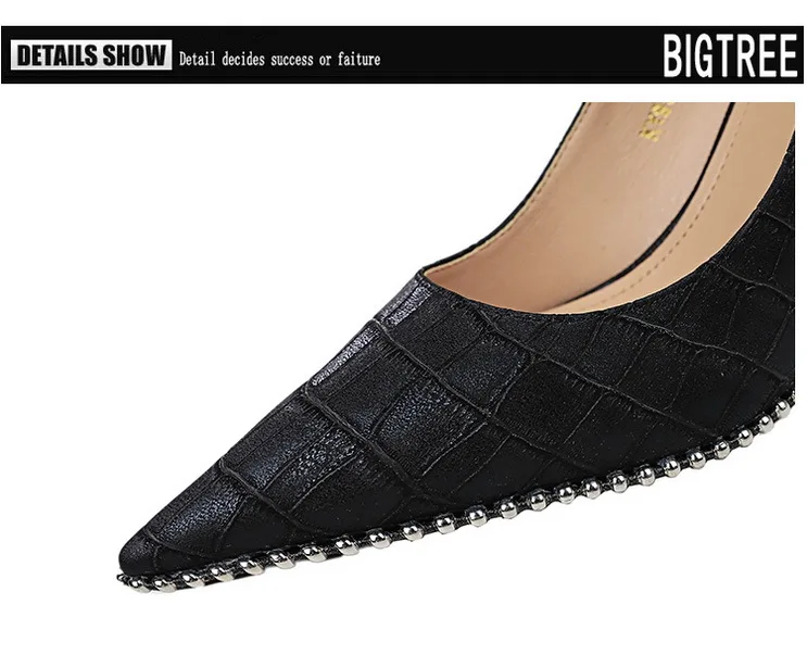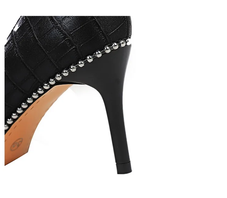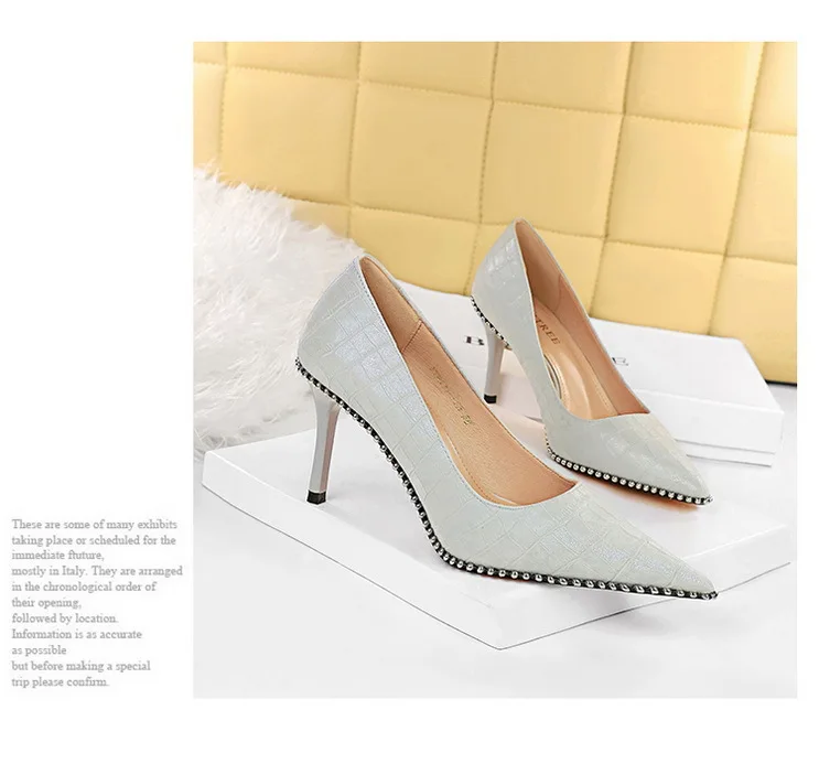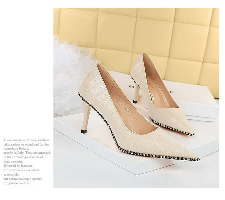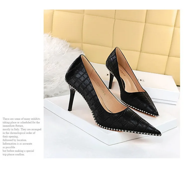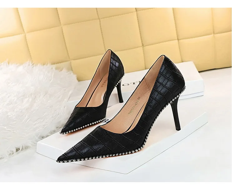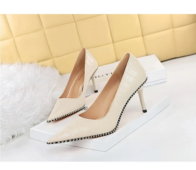 Fashion Retro Personality Fashion Women's Shoes Stiletto High Heels Shallow Mouth Pointed Metal Beads Rivets Single Shoes