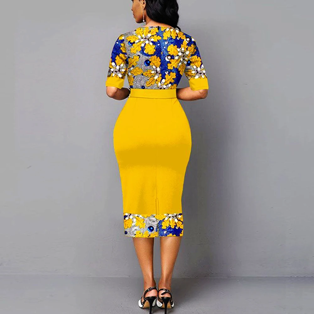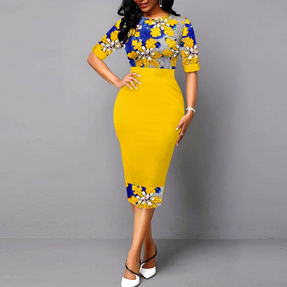 Fashion Sexy Slim Dress Women Casual O-neck Short Sleeve Elegant Ladies Party Dresses Autumn Vintage Printed Female Maxi Dress