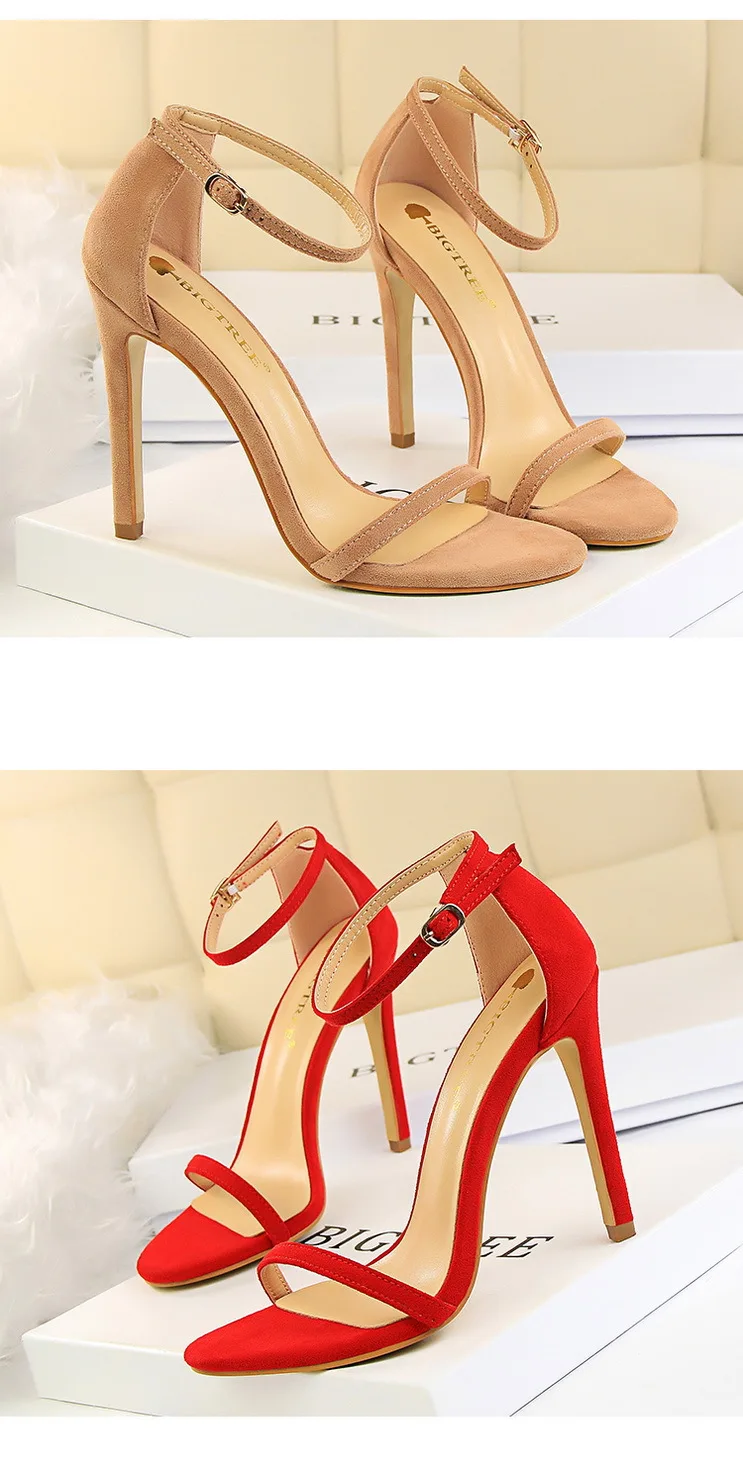 Fashion Sexy Women 's Shoes Super High Heel Suede Word with Summer High Heels Sandals CHUQING Brand Fashion High Quality