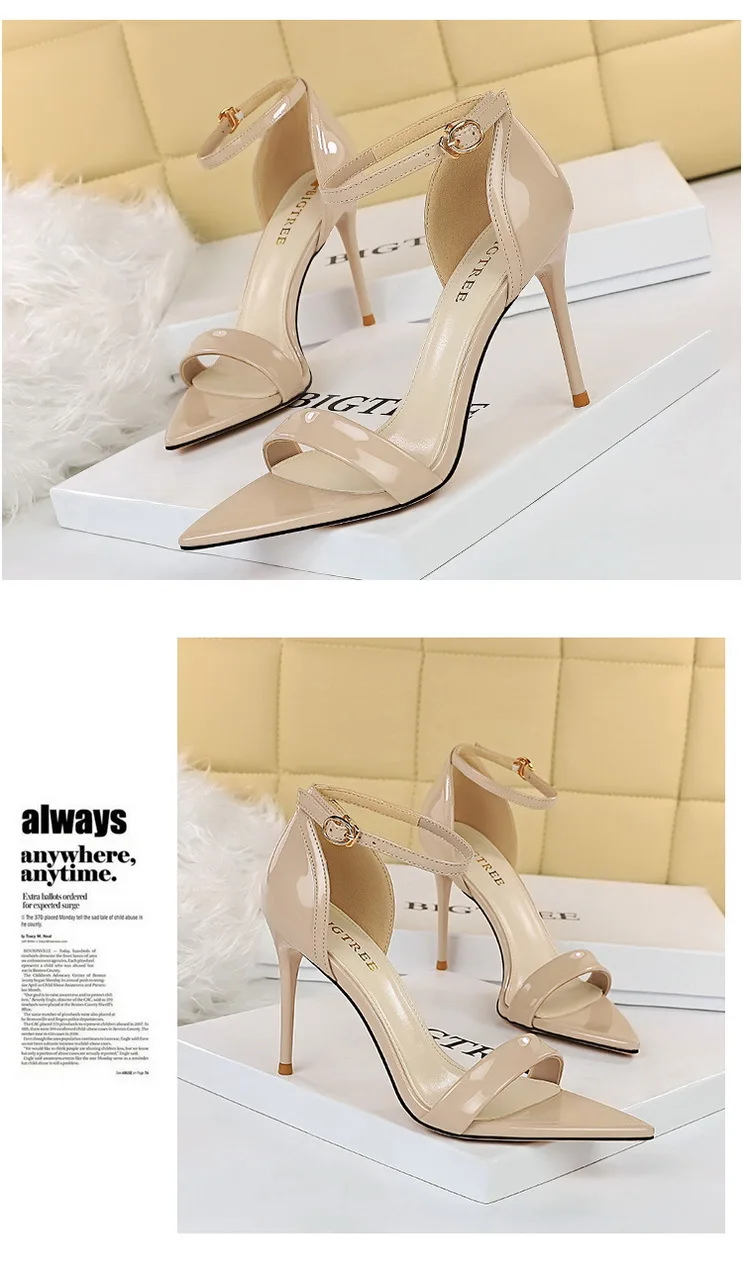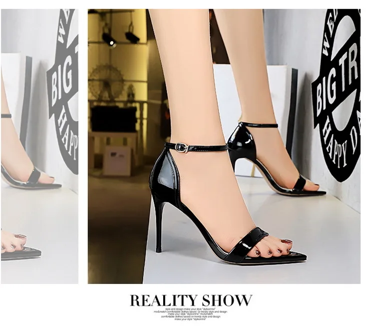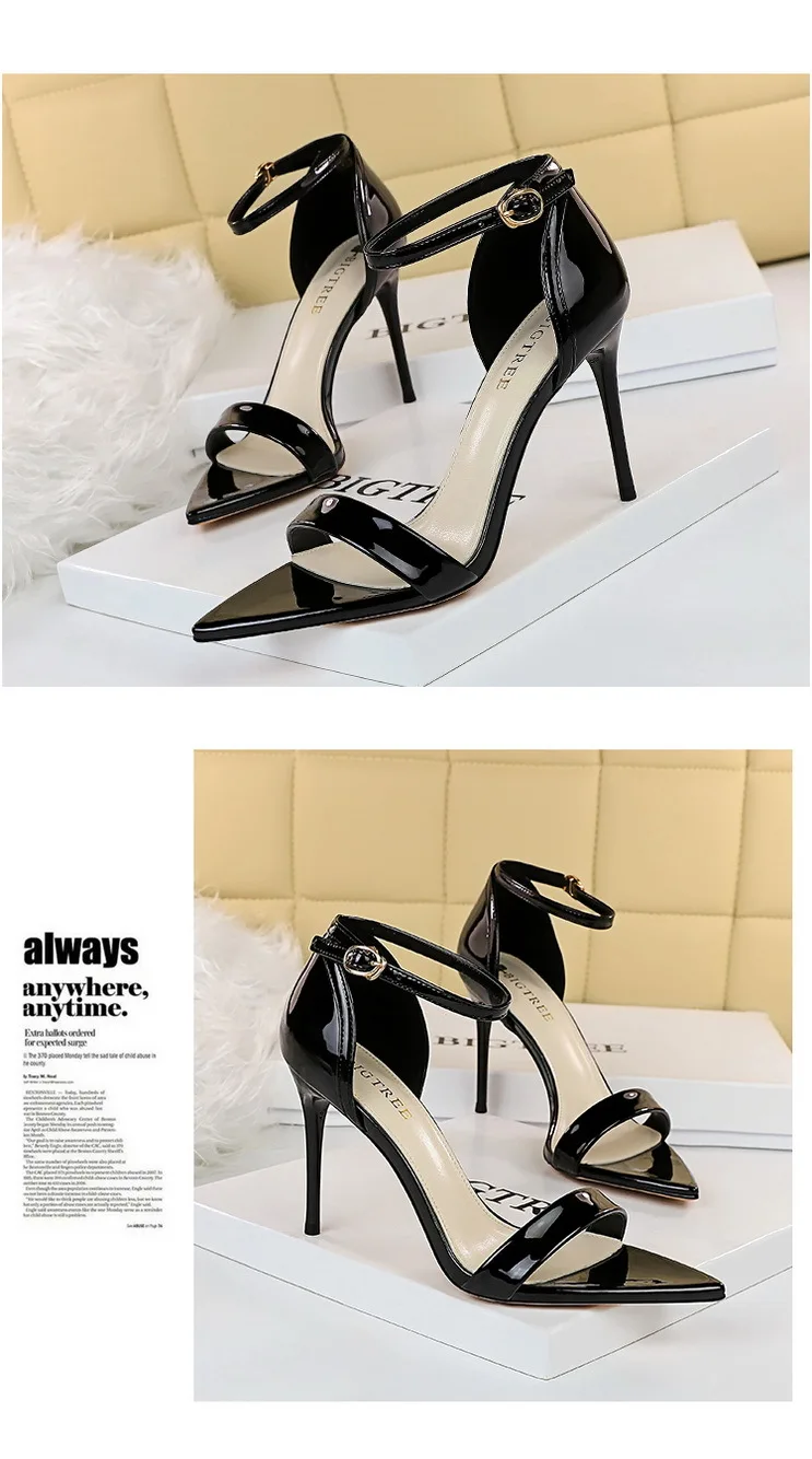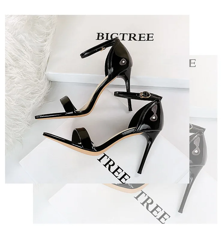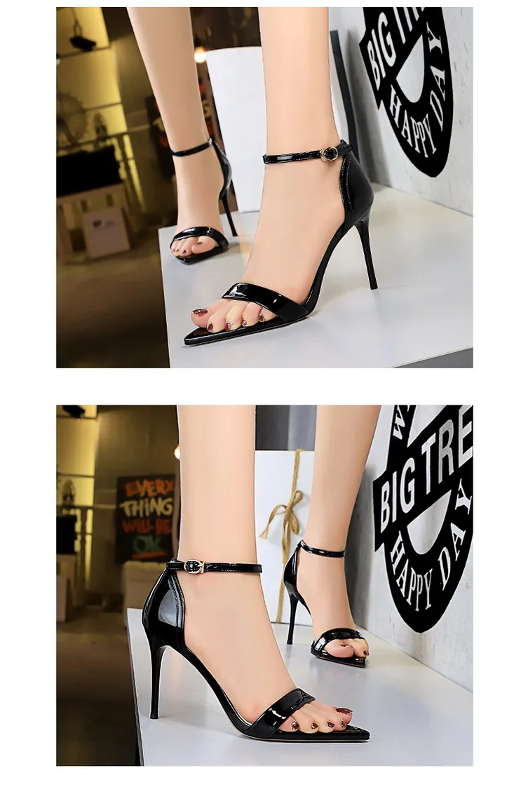 Fashion Simple Stiletto Pointed Toe Open Toe Word with Summer High Heels Women's Shoes Single Shoes Black Shoes Sandals Size 42