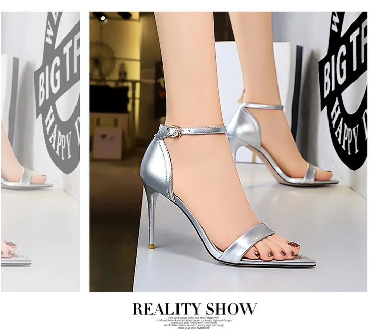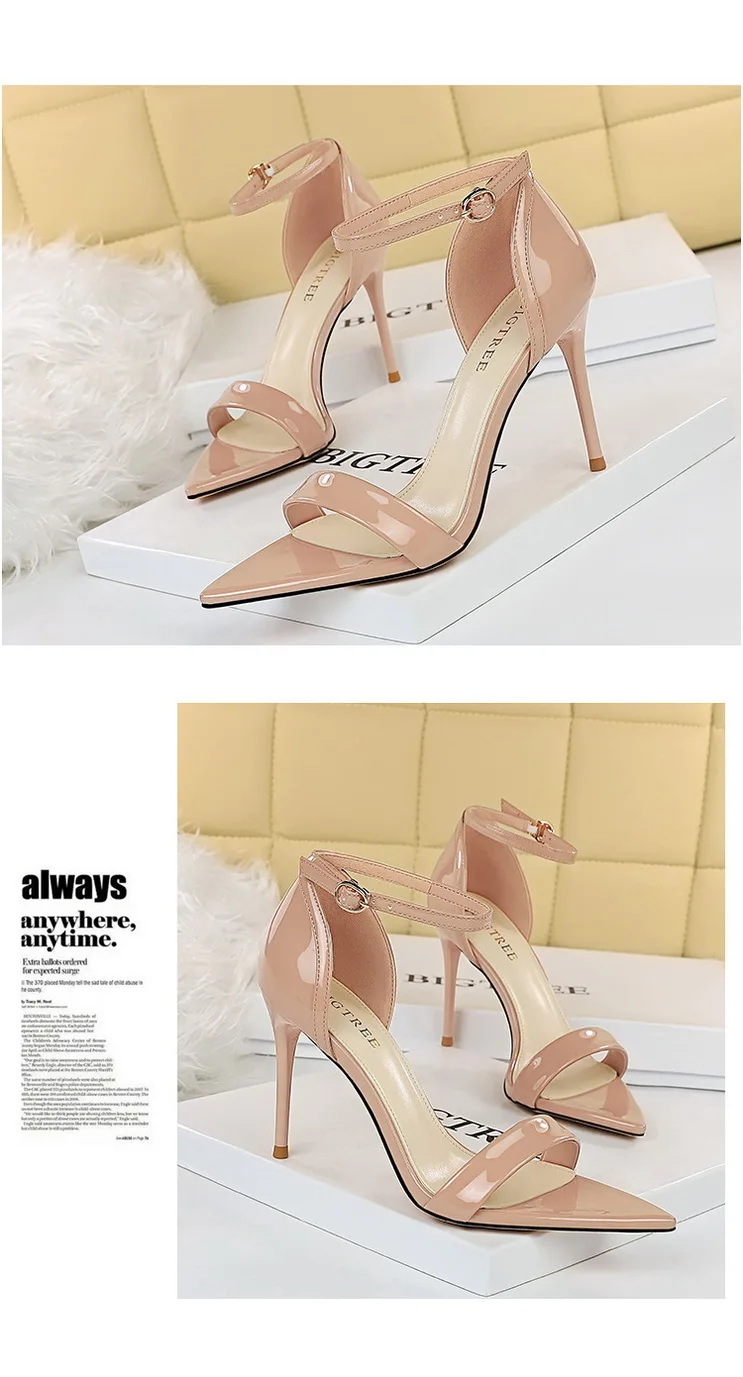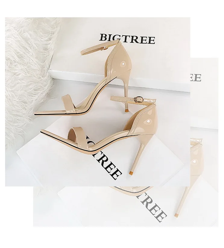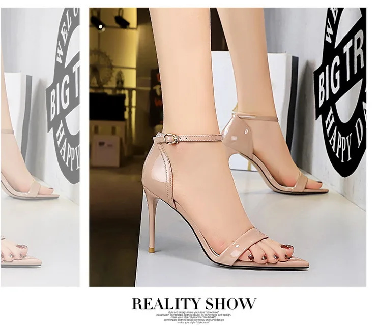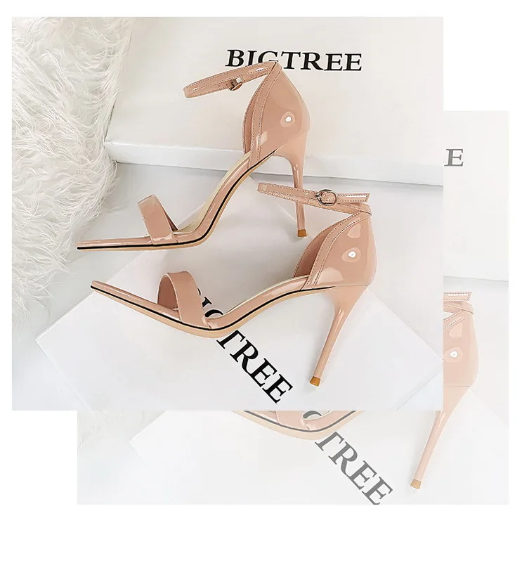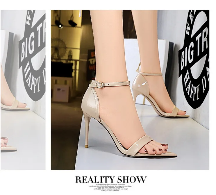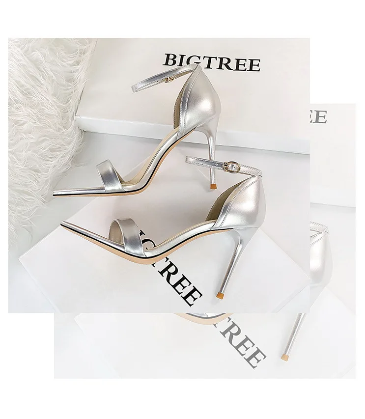 Fashion Simple Stiletto Pointed Toe Open Toe Word with Summer High Heels Women's Shoes Single Shoes Black Shoes Sandals Size 42