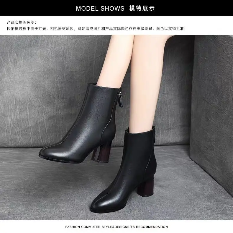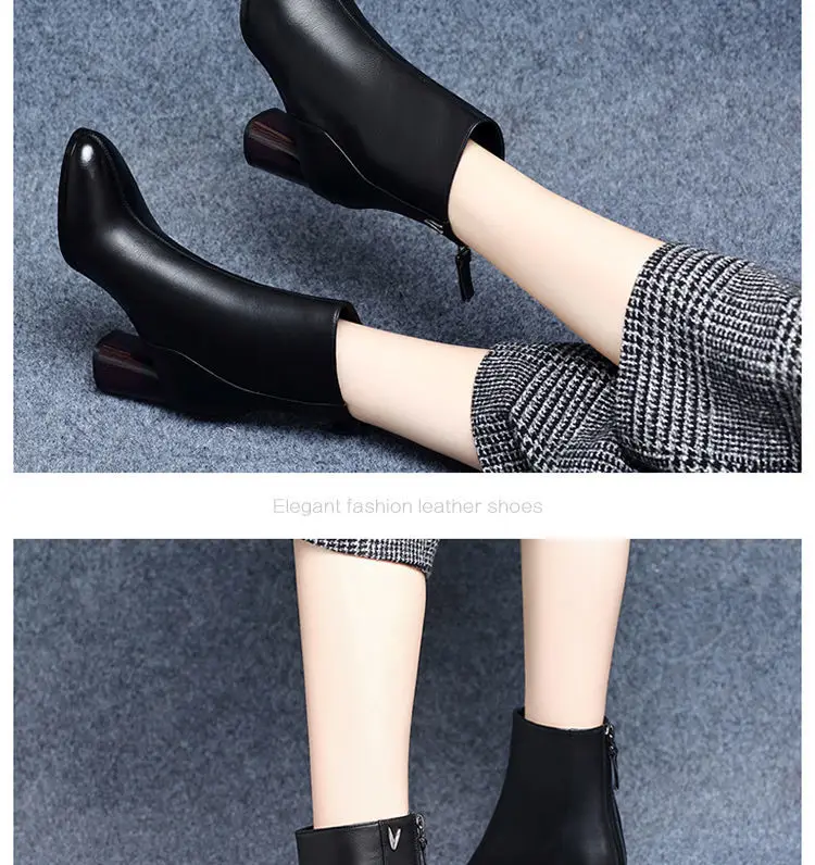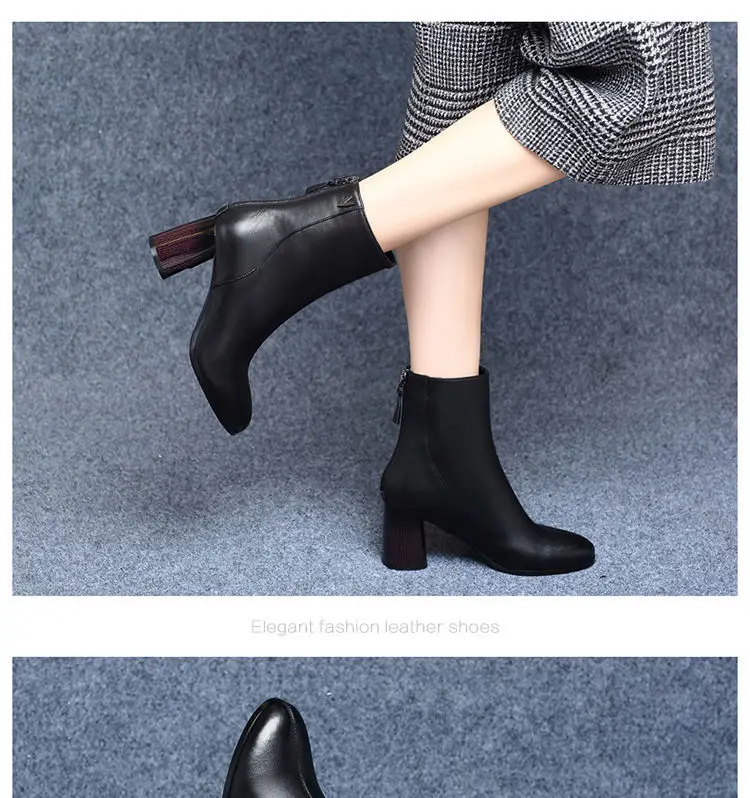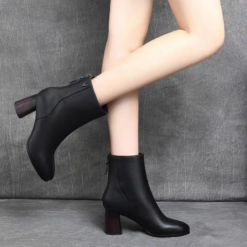 Fashion Split Toe Boots Women Chunky Round High Heels Women Leather Botas Mujer 2020 New Brand Design Winter Shoes Women56gh