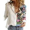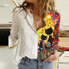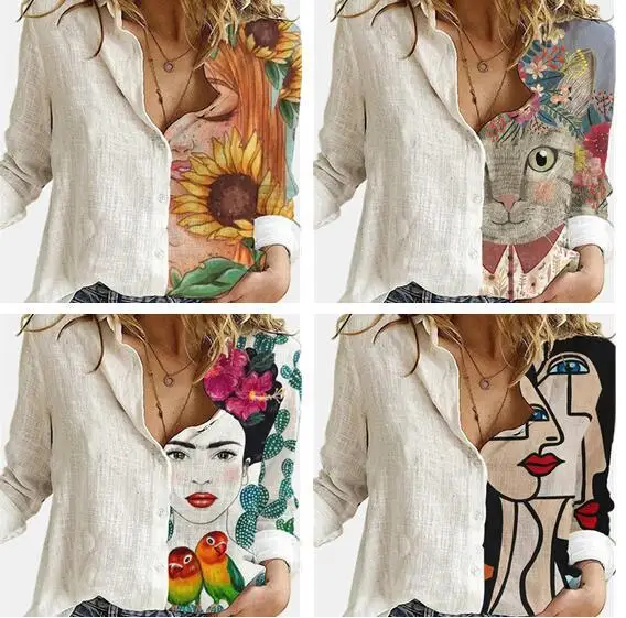 Fashion Stitching Cute Cat Print Long Sleeve Blouses Women 2022 Spring Lapel Button Casual Top Lady 3XL Cotton Polyester Shirts