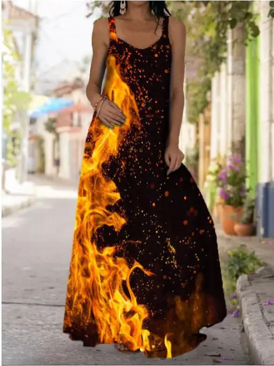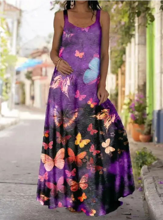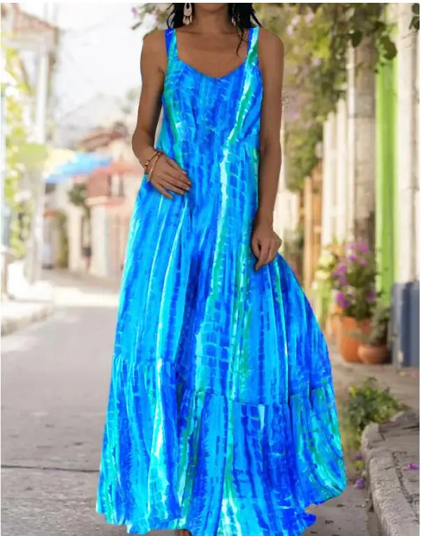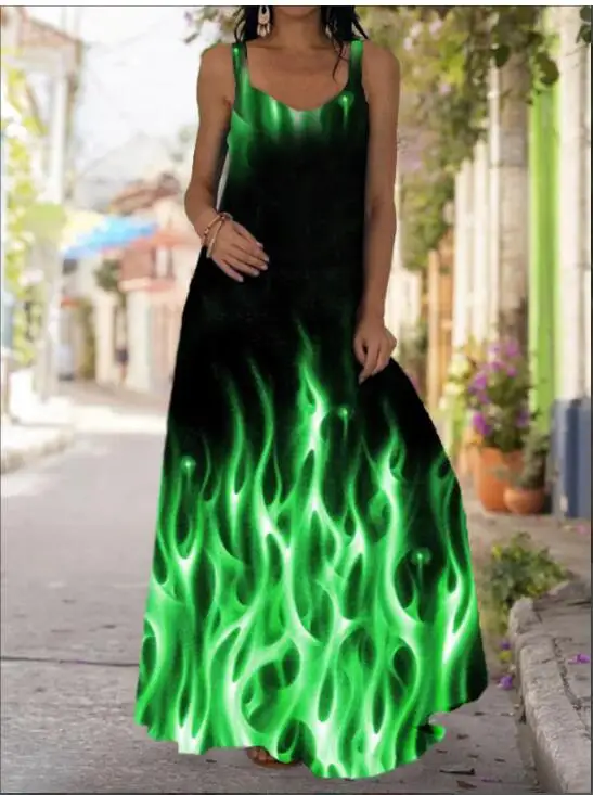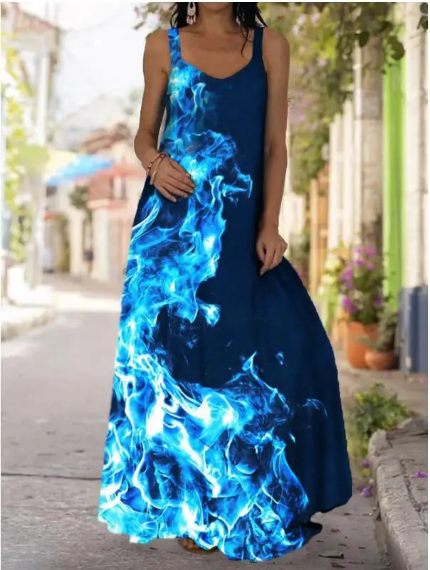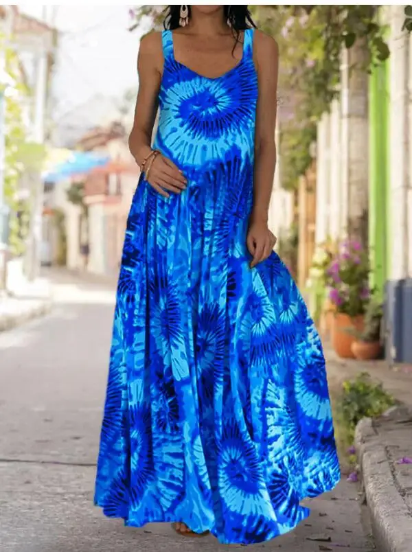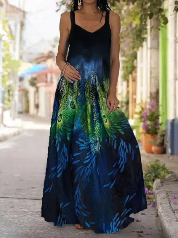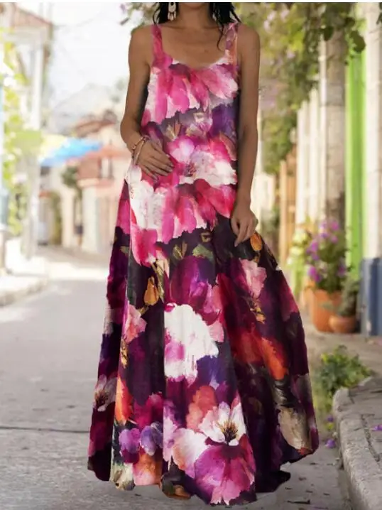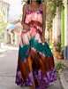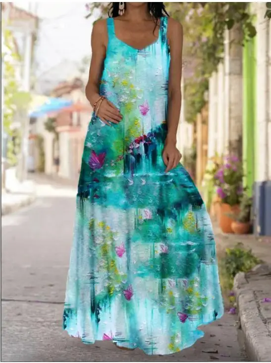 Fashion Style Vintage Printing Women Sundress Summer V-neck Sleeveless Long Dress Elegant Ladies Maxi Dresses Plus Size 5XL