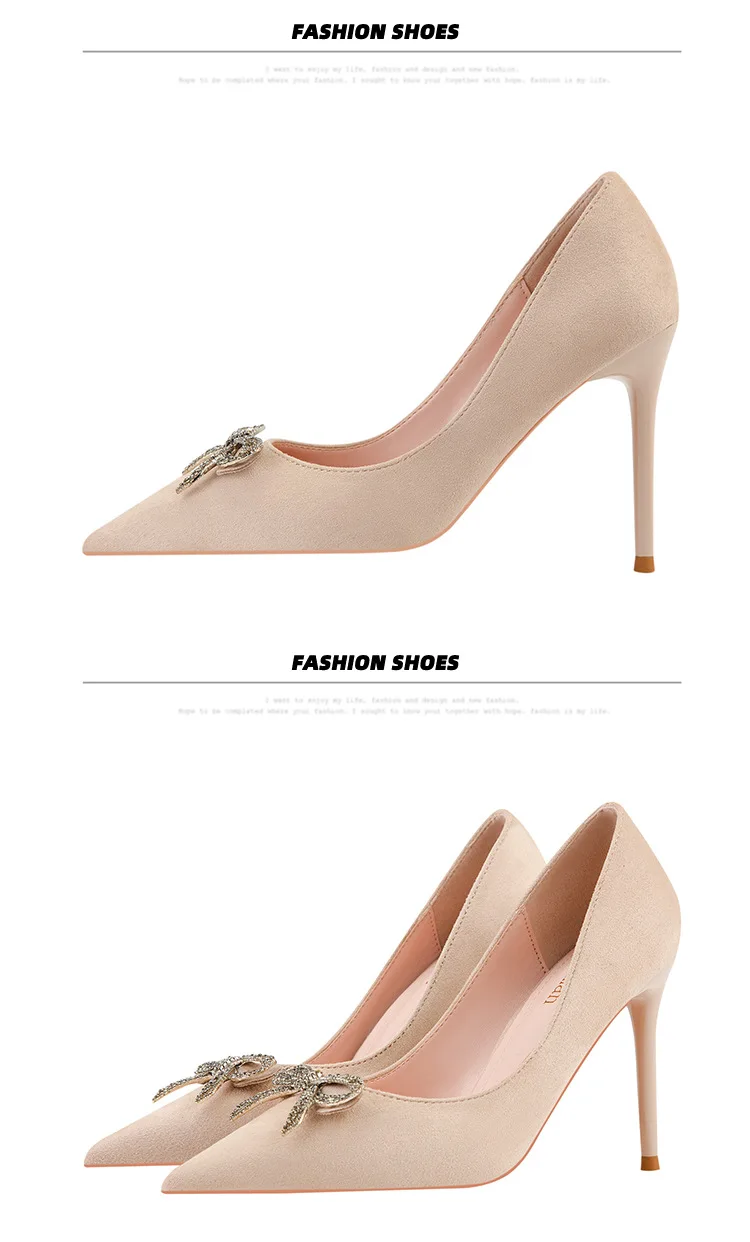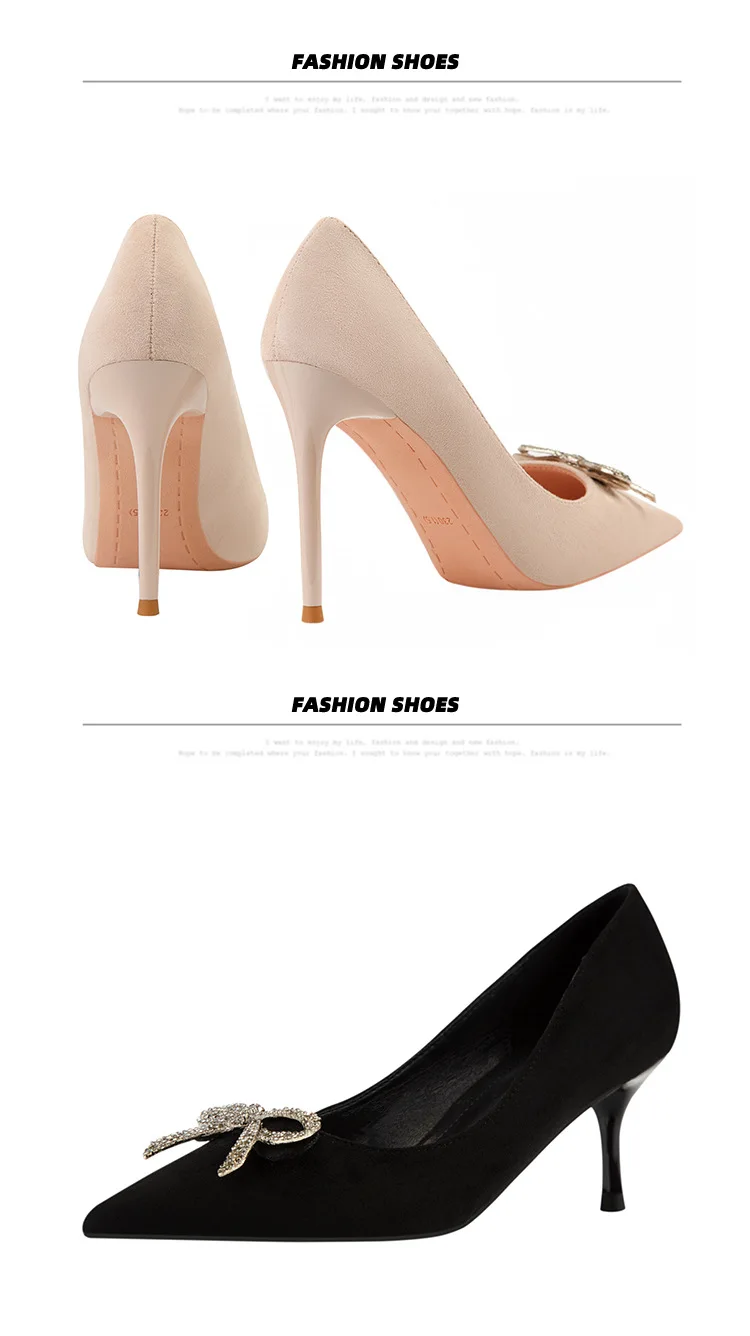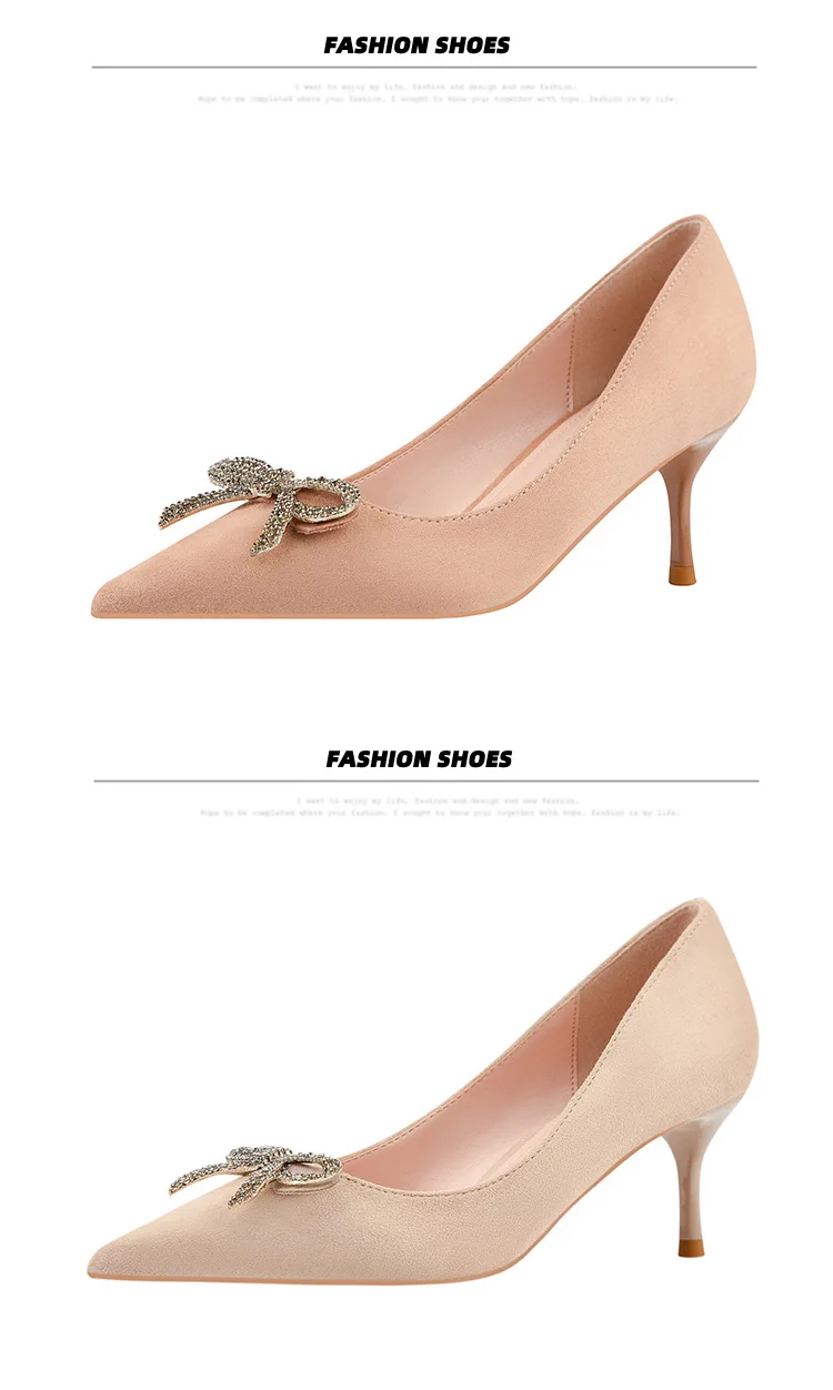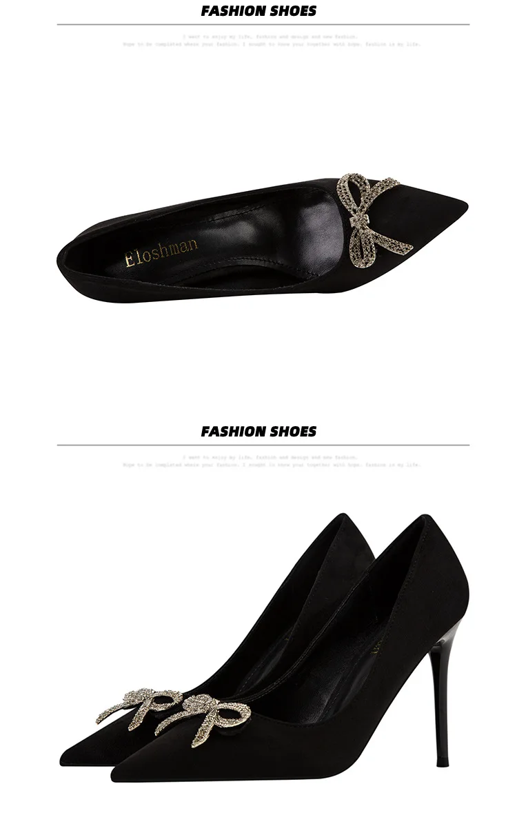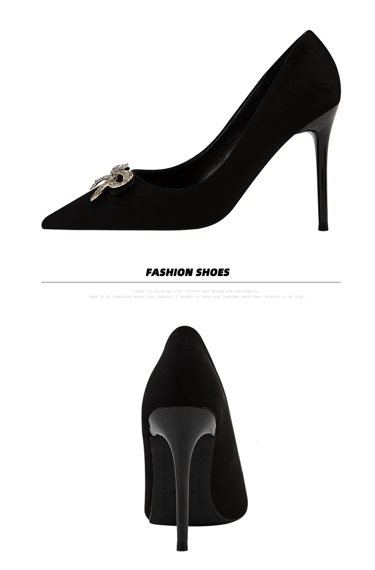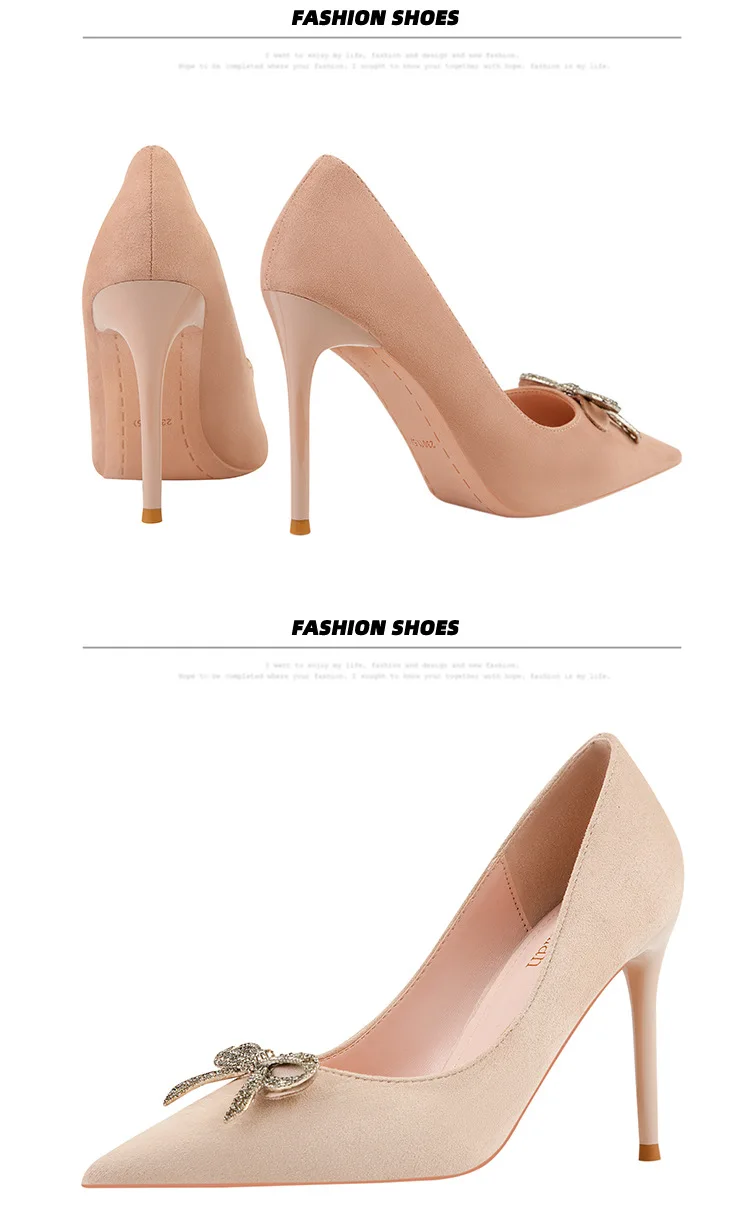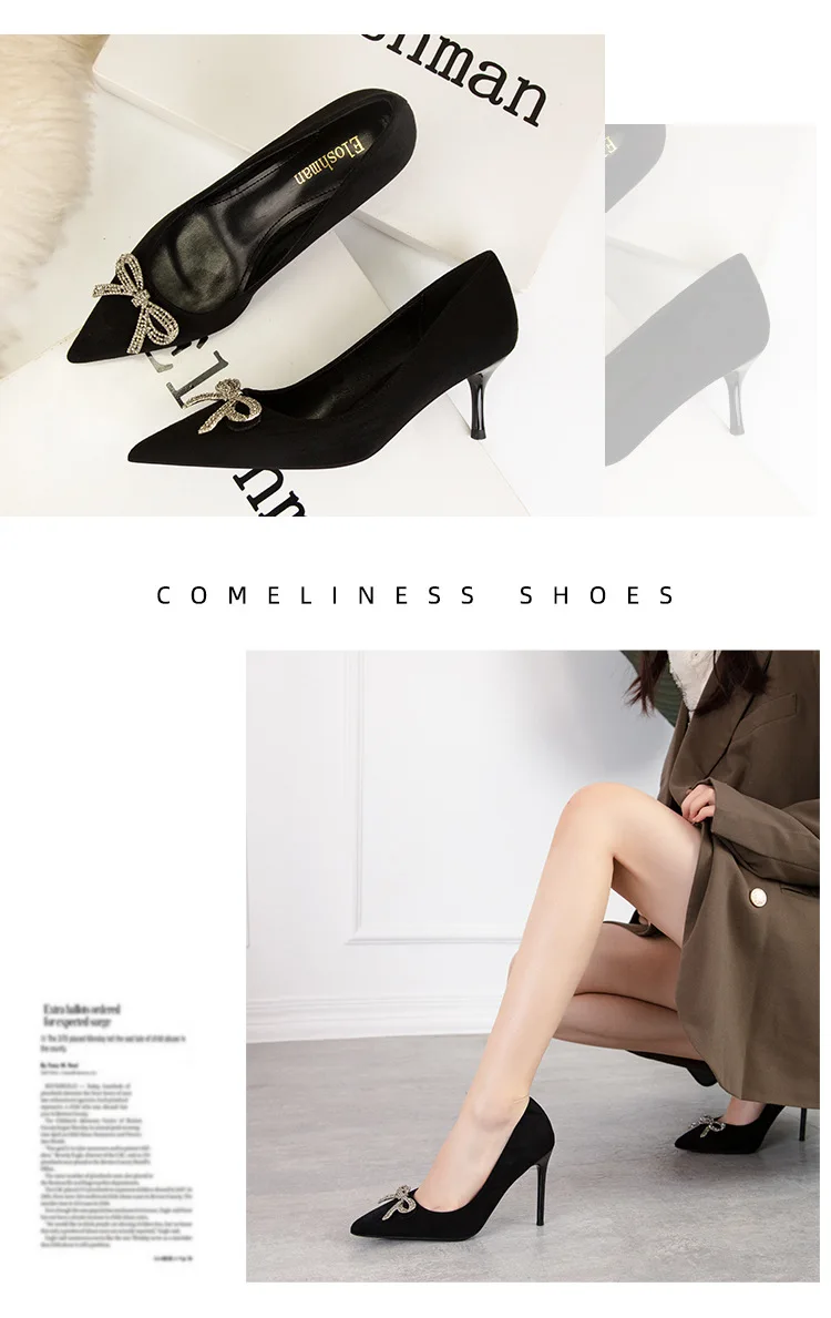 Fashion Sweet Beauty High Heels Stiletto High Heels Shallow Mouth Pointed Rhinestone Bow Women's High Quality Single Shoes