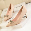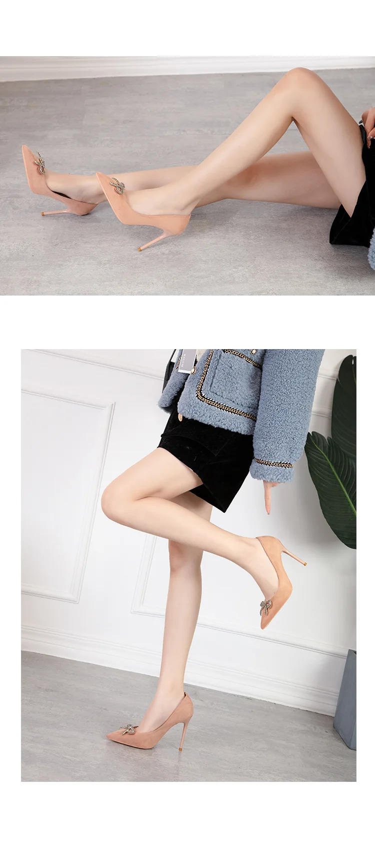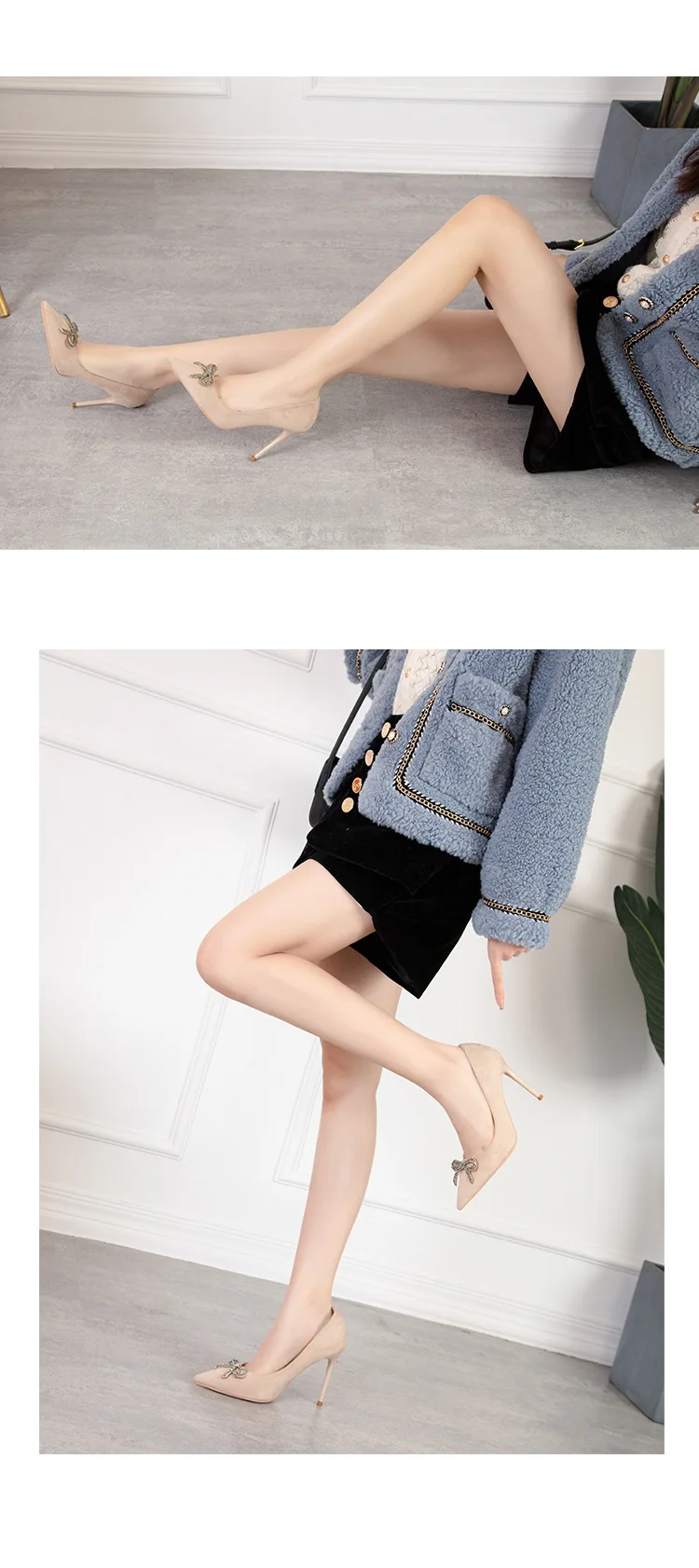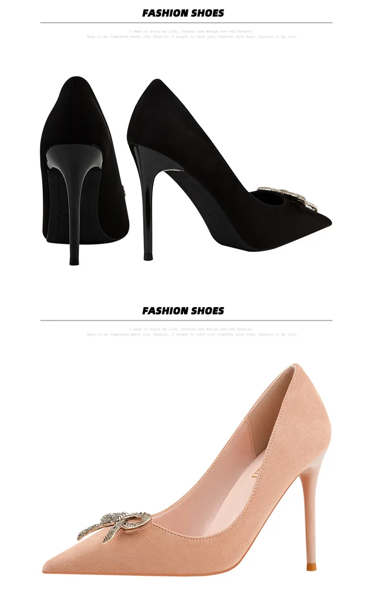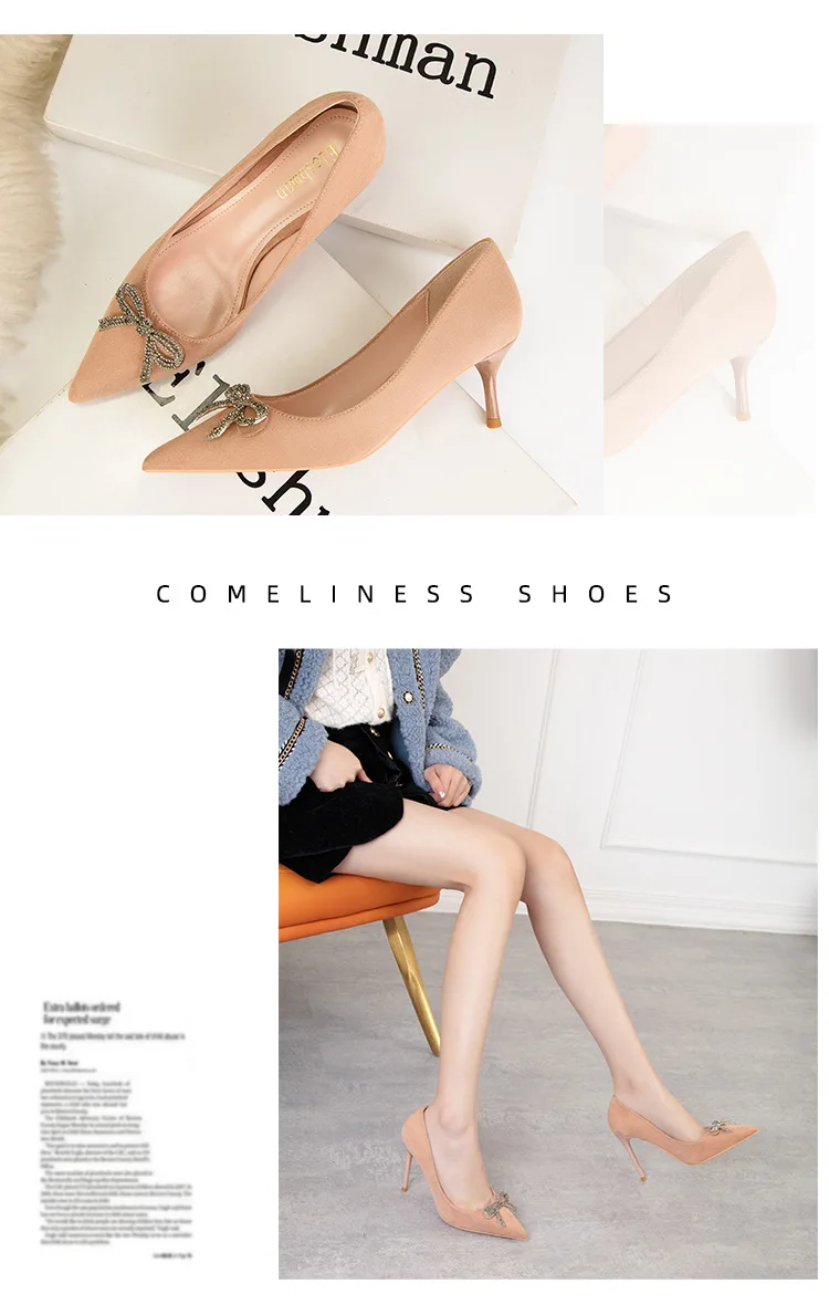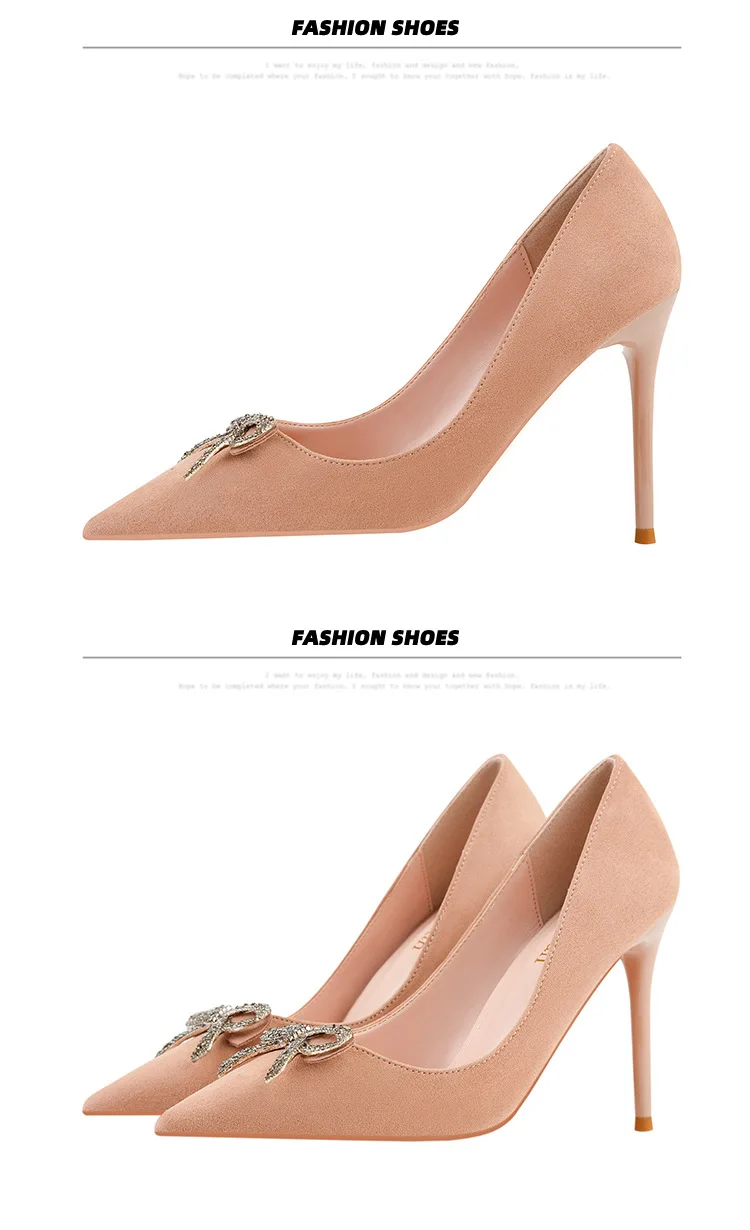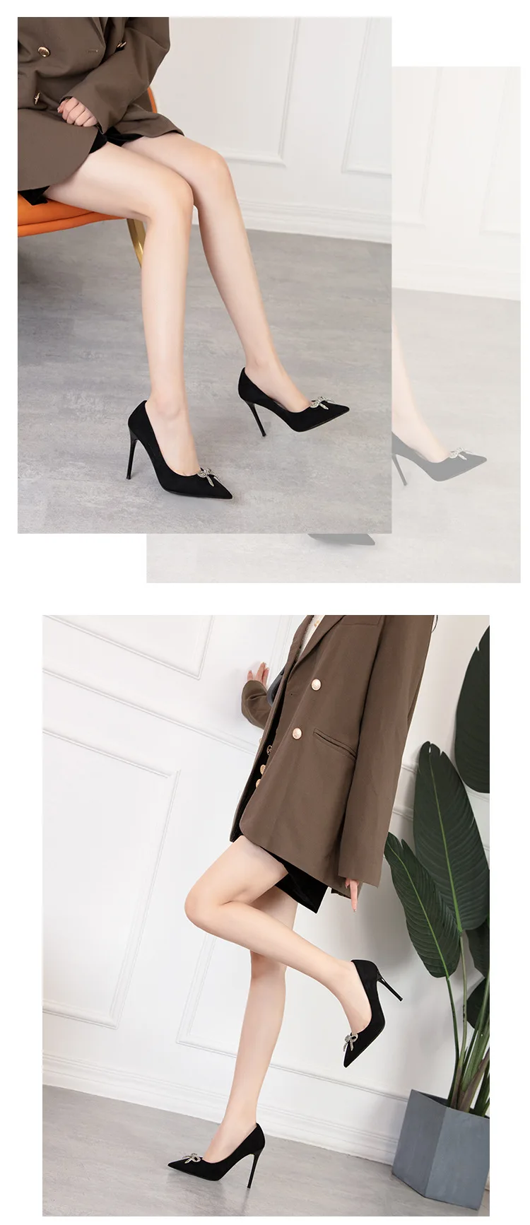 Fashion Sweet Beauty High Heels Stiletto High Heels Shallow Mouth Pointed Rhinestone Bow Women's High Quality Single Shoes