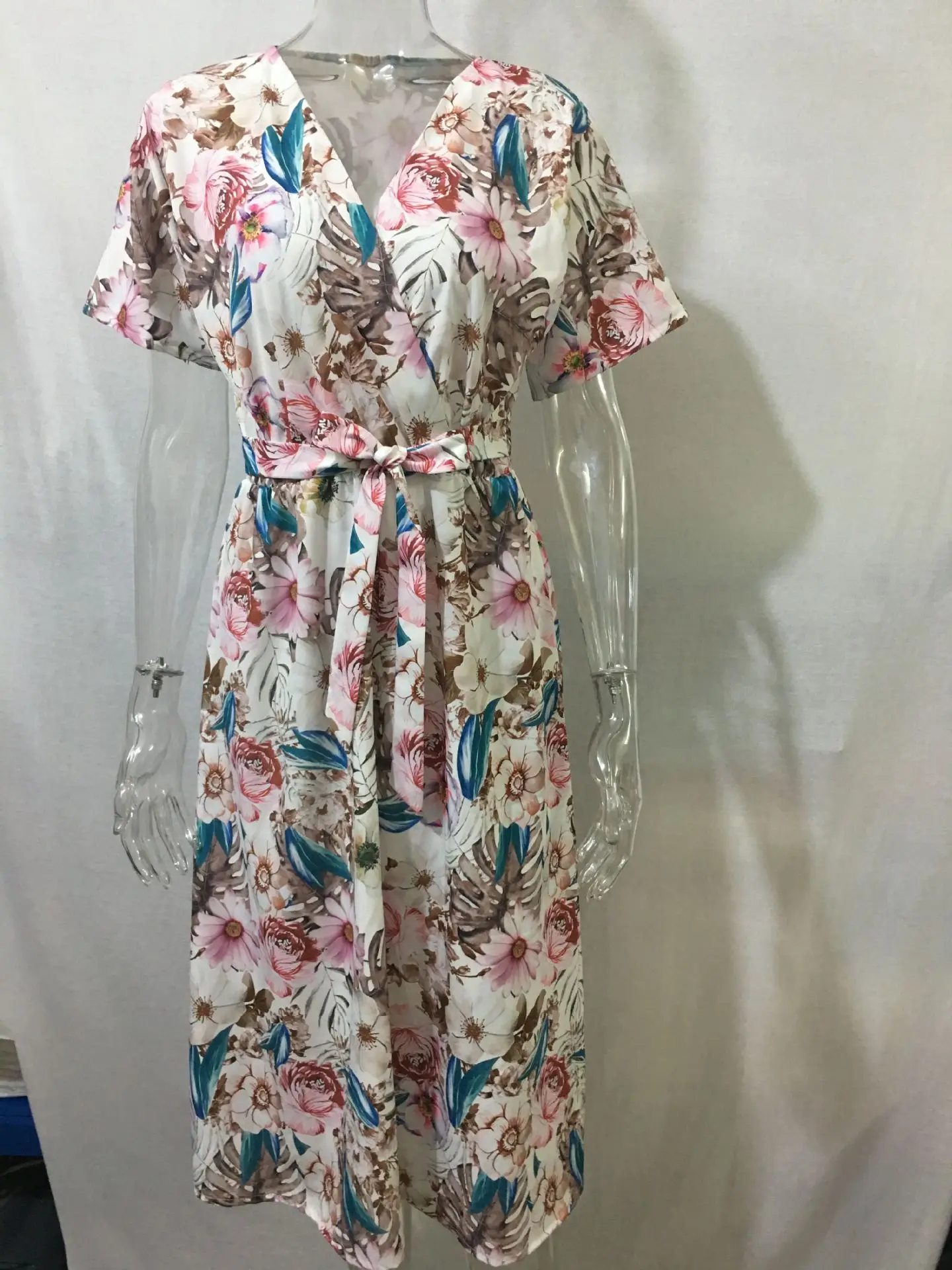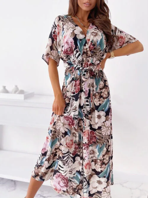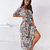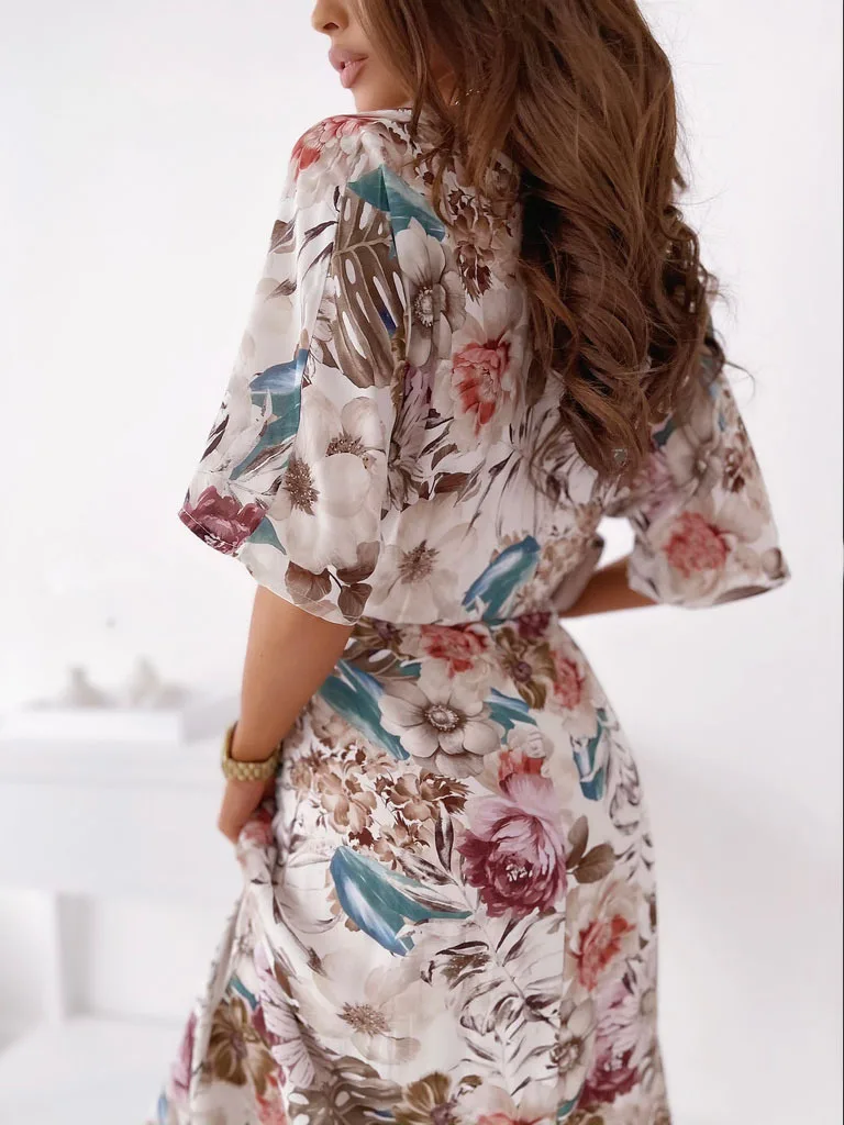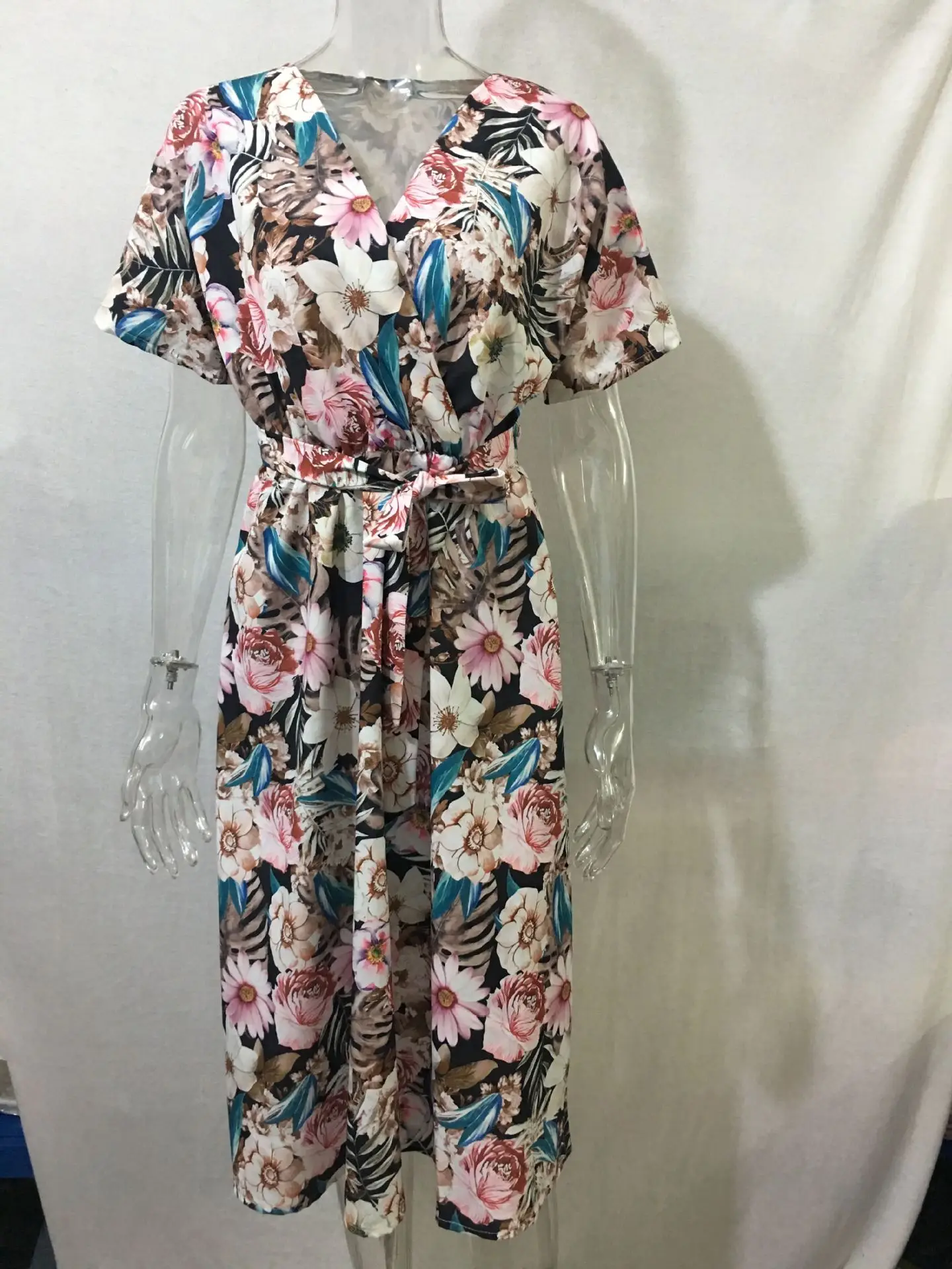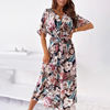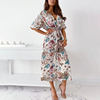 Fashion V Nekc Short Sleeve Flowers Print Long Dress Woman 2021 Summer Beach Casual Midi Dresses For Women Robe Femme