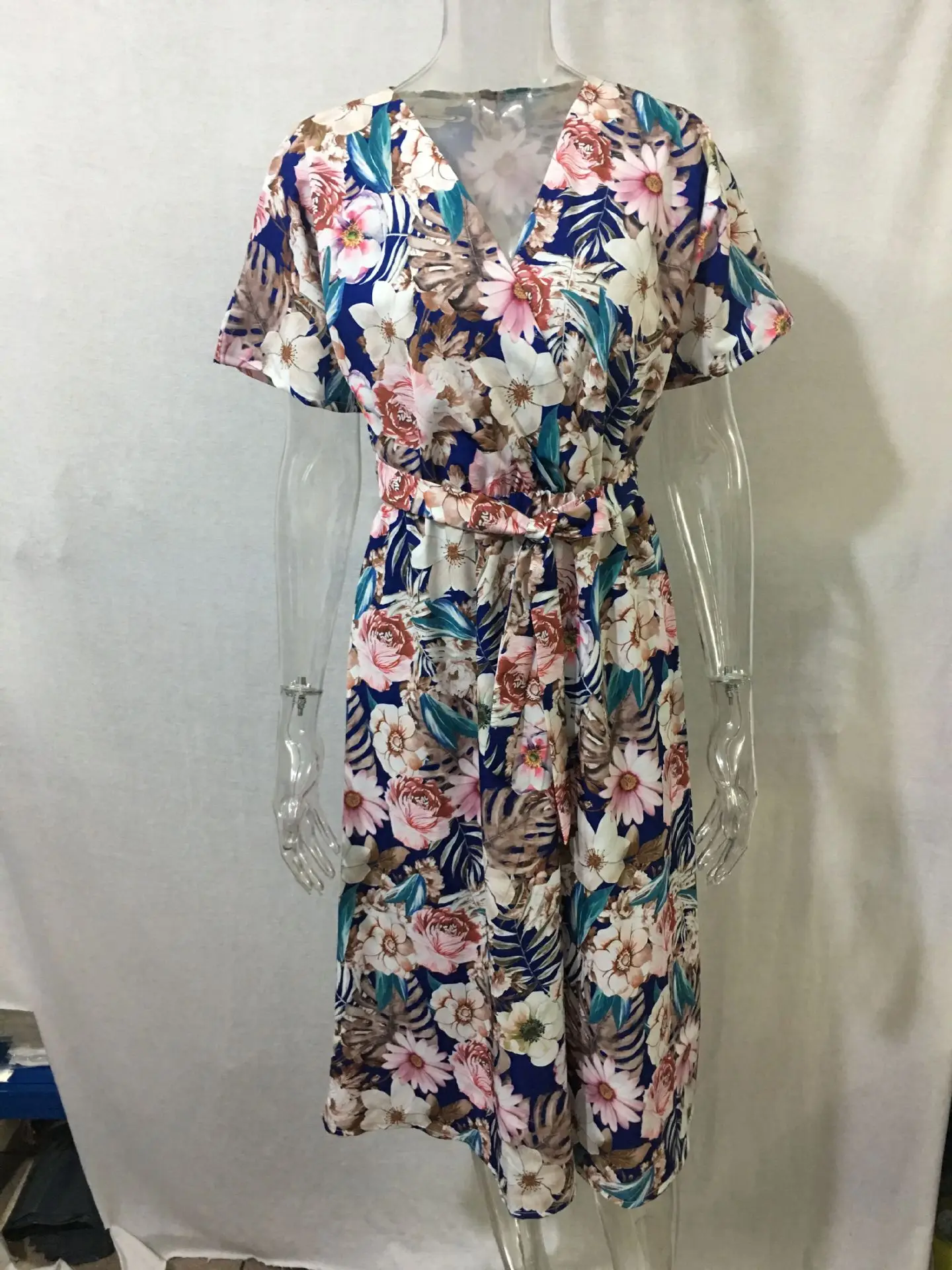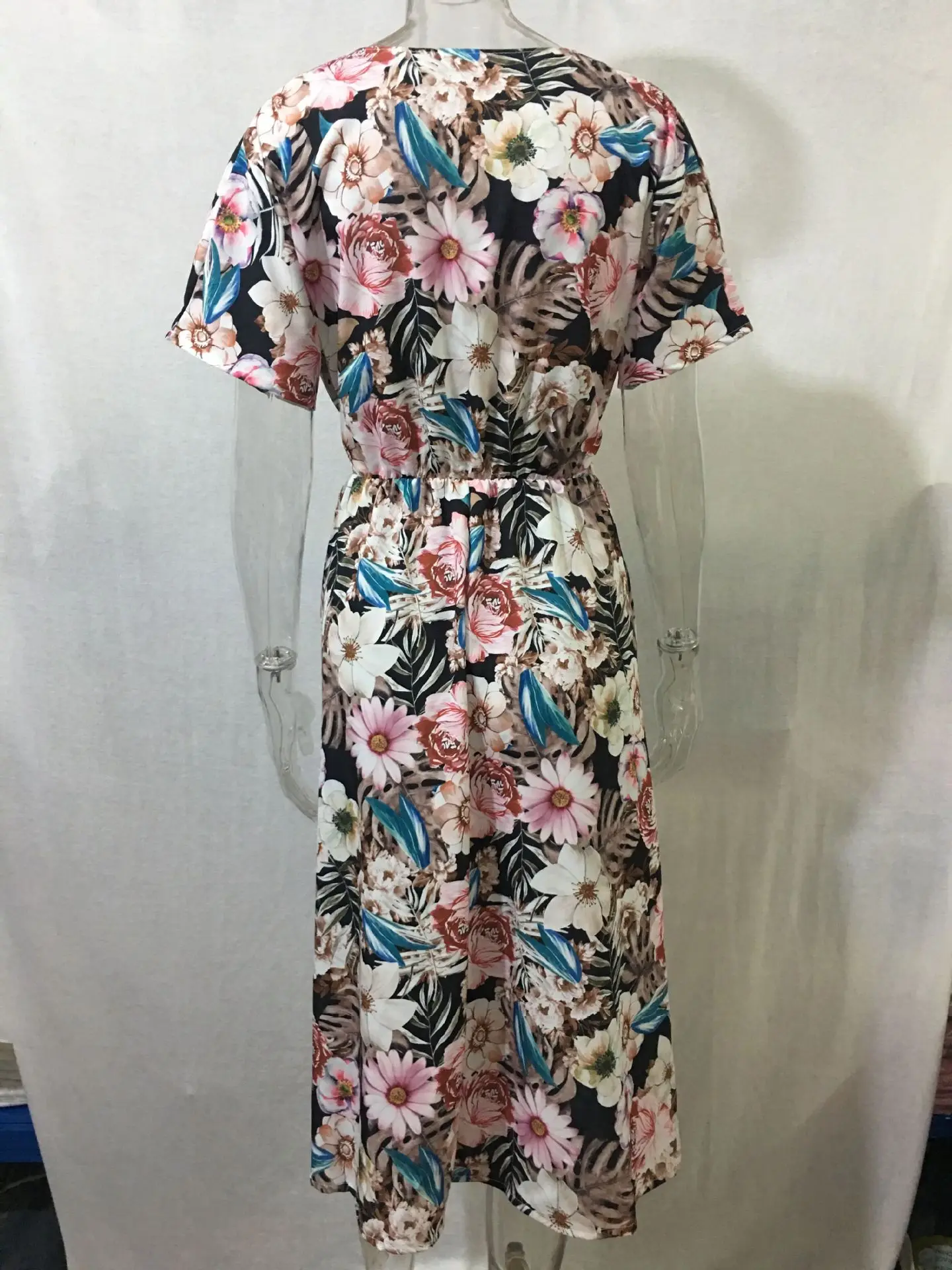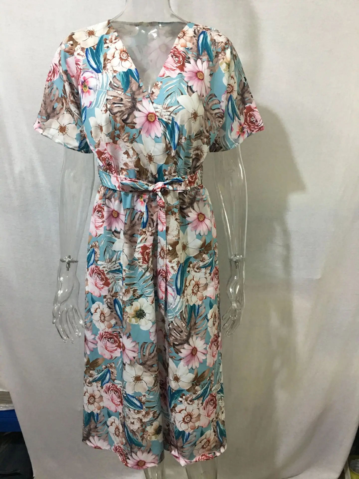 Fashion V Nekc Short Sleeve Flowers Print Long Dress Woman 2021 Summer Beach Casual Midi Dresses For Women Robe Femme