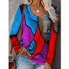 Fashion Vintage Blouse Women 2021 Autumn O-neck Long-sleeved Patchword Printed Pockets Casual Shirt Ladies Loose Street Tops