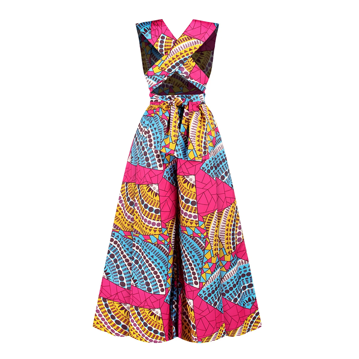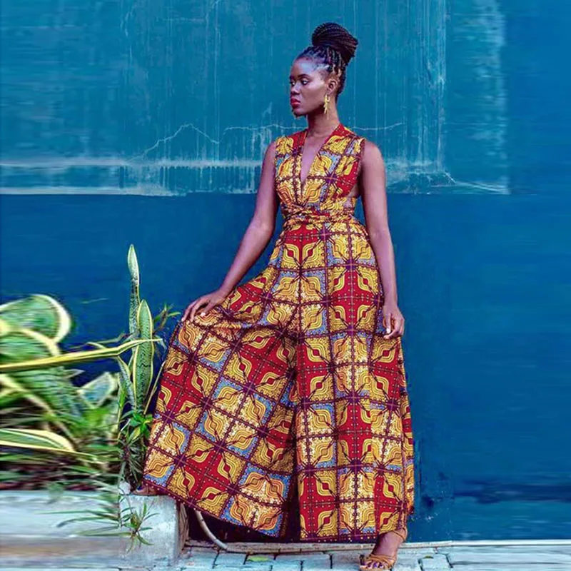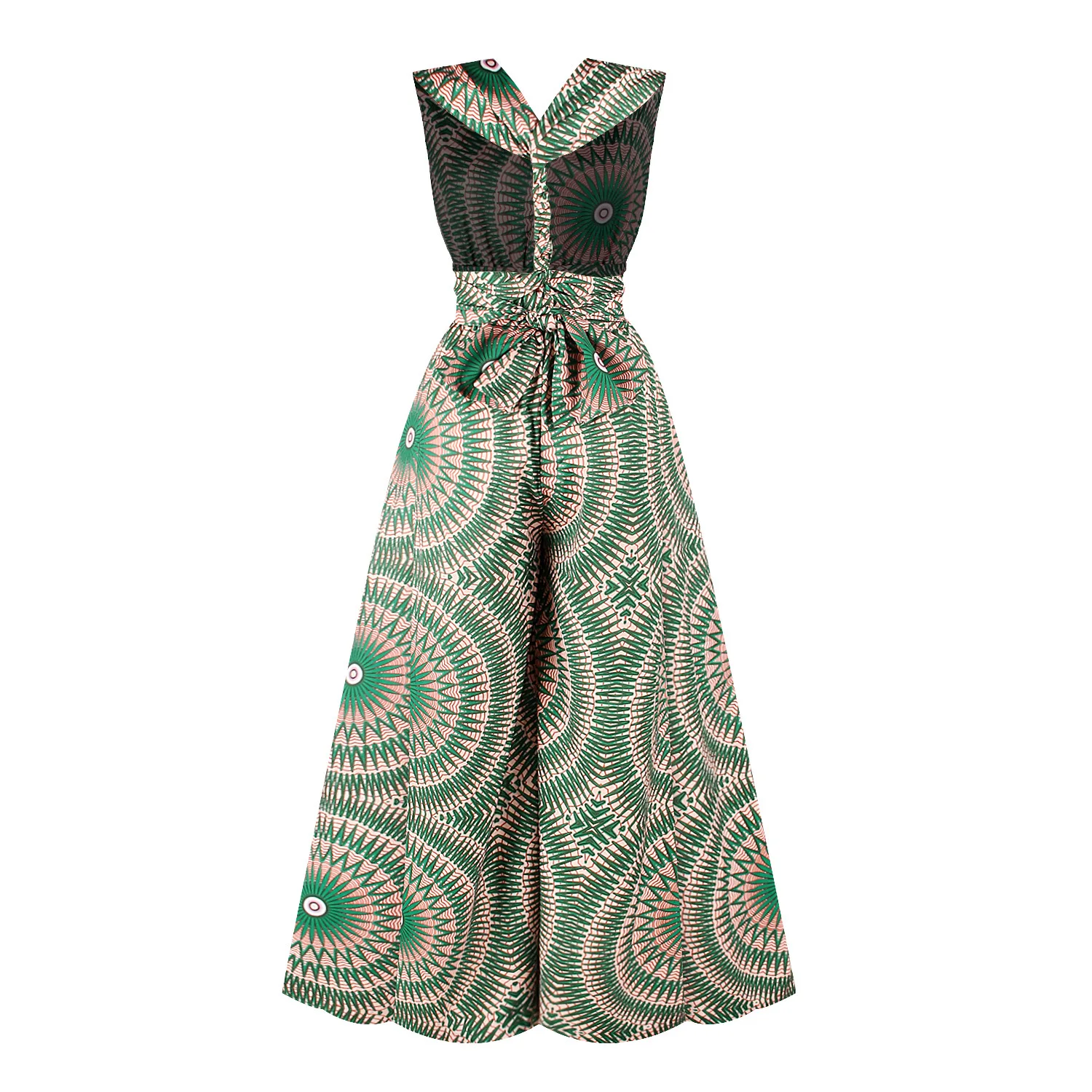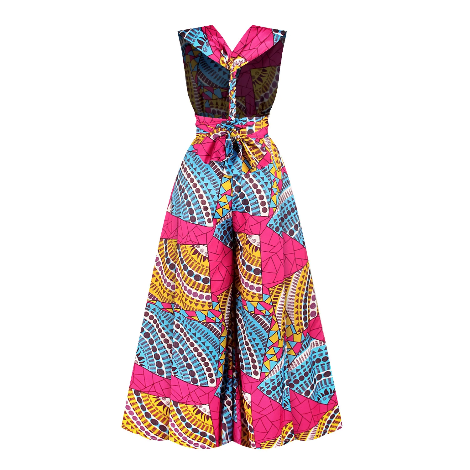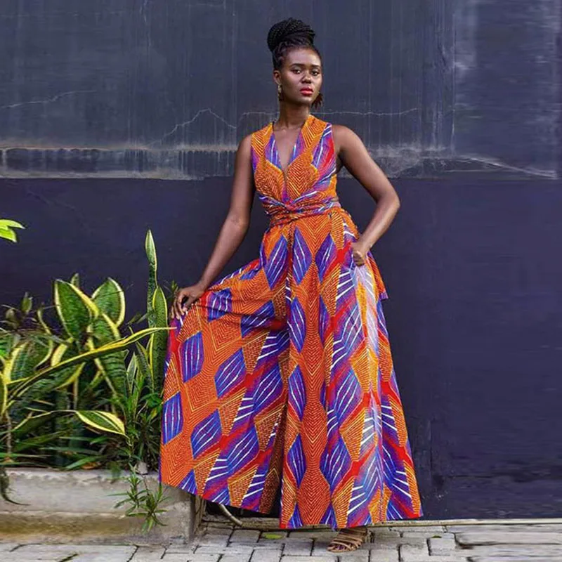 Fashion Wide-Leg Women Jumpsuit New Elegant Sexy V Neck Sleeveless Lady Party Playsuits Vintage National Print Loose Rompers